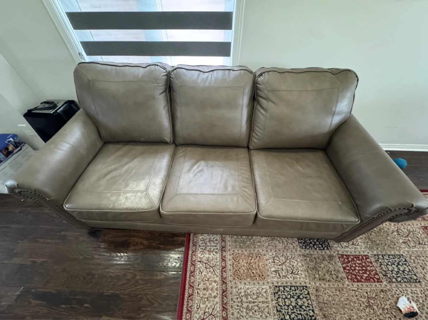 Hi i am selling sofa set 1 sofa 3 seater and 1chair very good condition almost new leather very good condition just moveout sale pickup location 410 and sandalwood thanks
