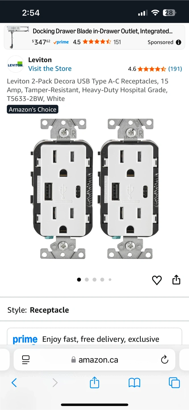 Leviton Decora+ USB-A + USB-C Receptacles (2 Pack)