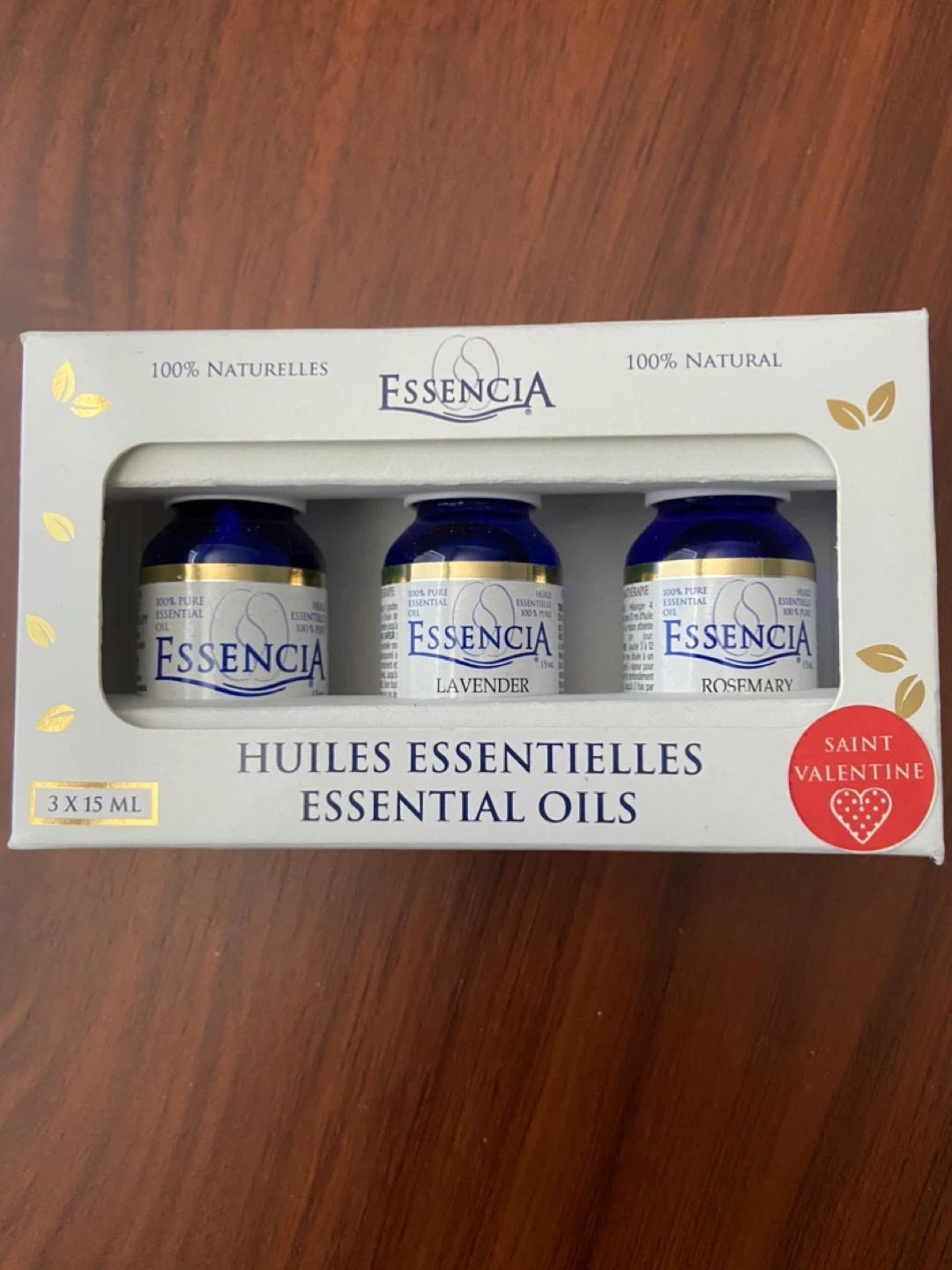 This Essencia set includes three 15ml bottles of essential oils, featuring Lavender, grapefruit and Rosemary. Each oil is 100% pure and natural. These oils are perfect for aromatherapy or personal use.