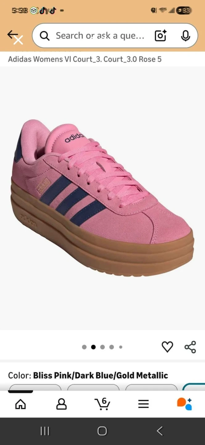 Adidas Court platform sneakers in bliss pink with dark blue accents. These shoes have a platform sole and a suede-like finish. They're great for everyday wear!