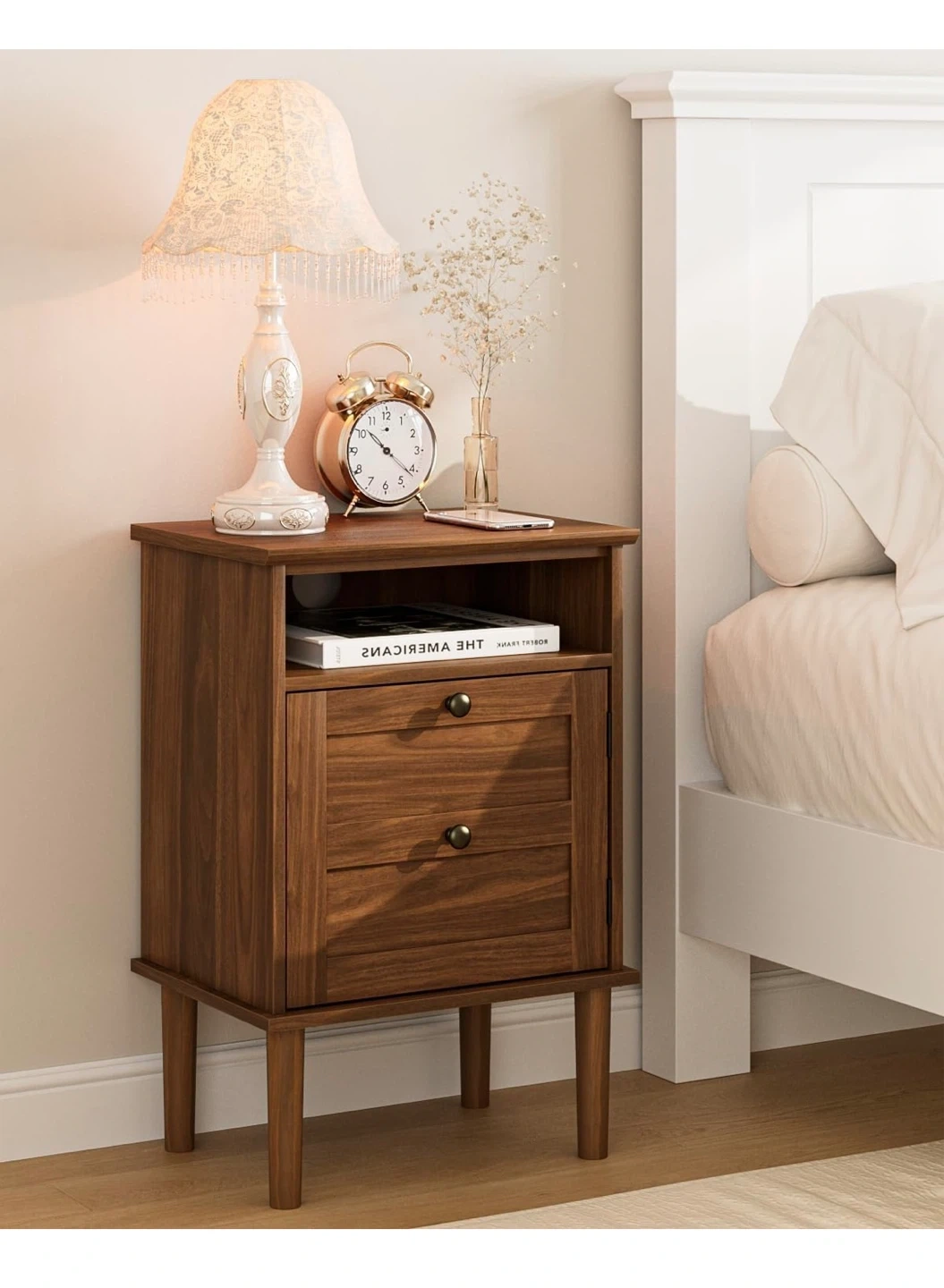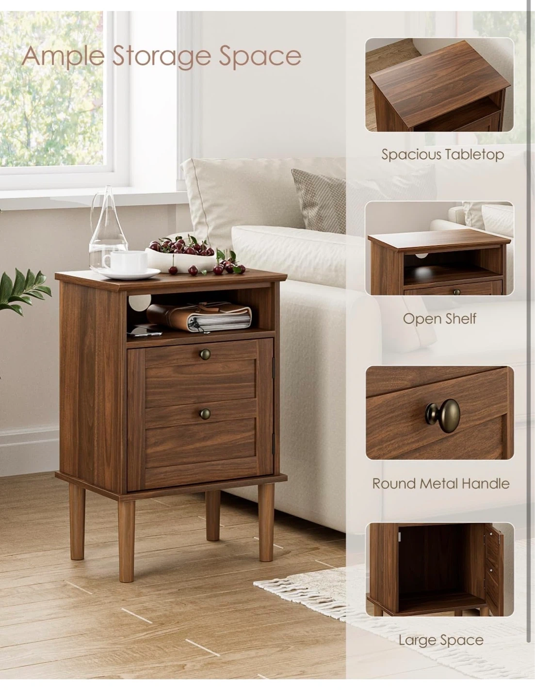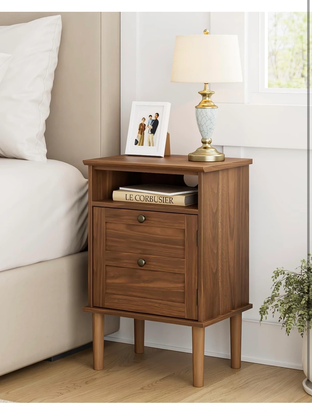 Apetaccat Walnut Finish Nightstand with 2 Drawers and Open Shelf