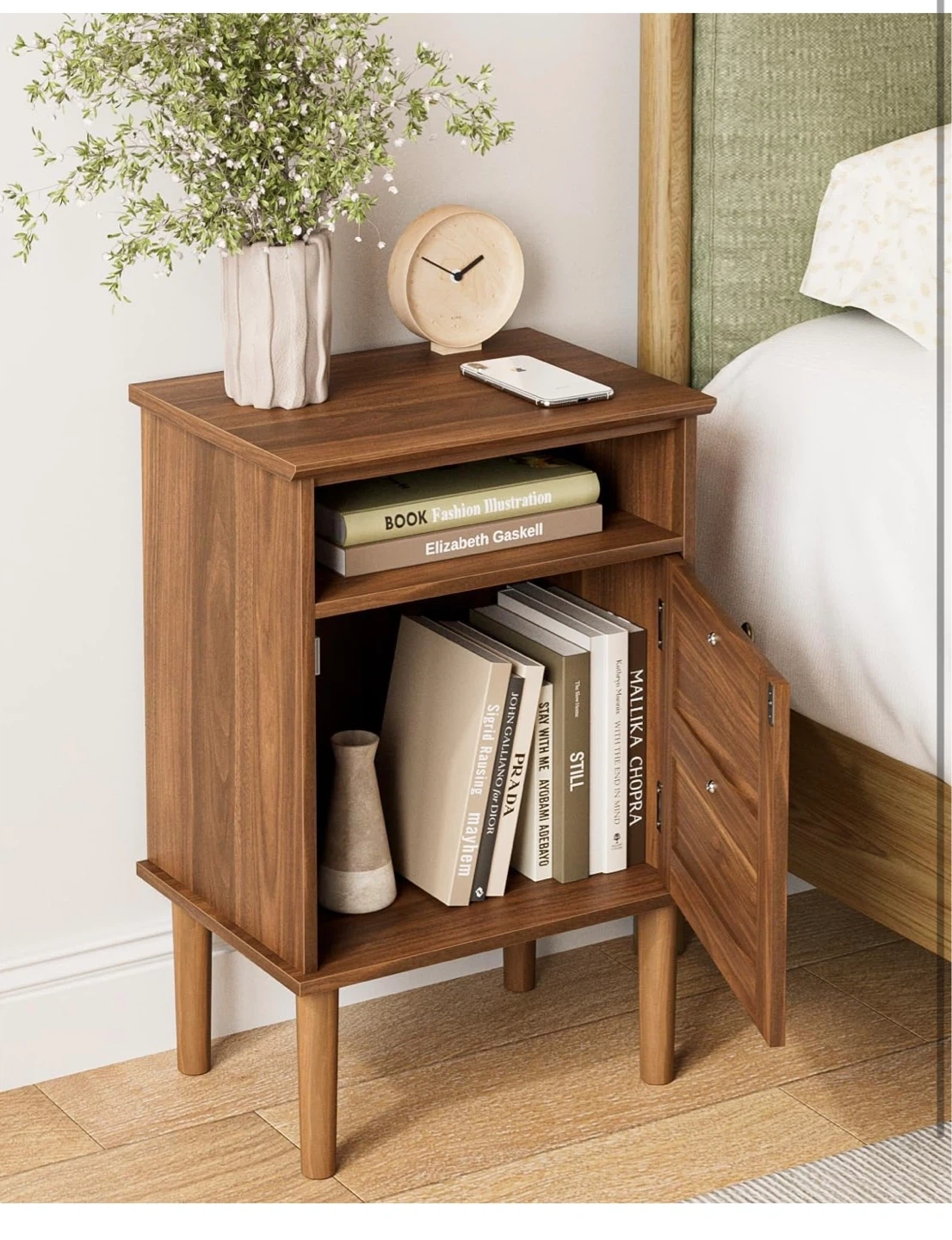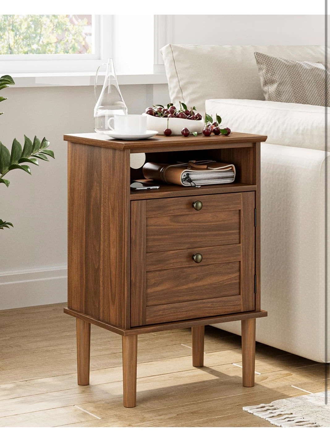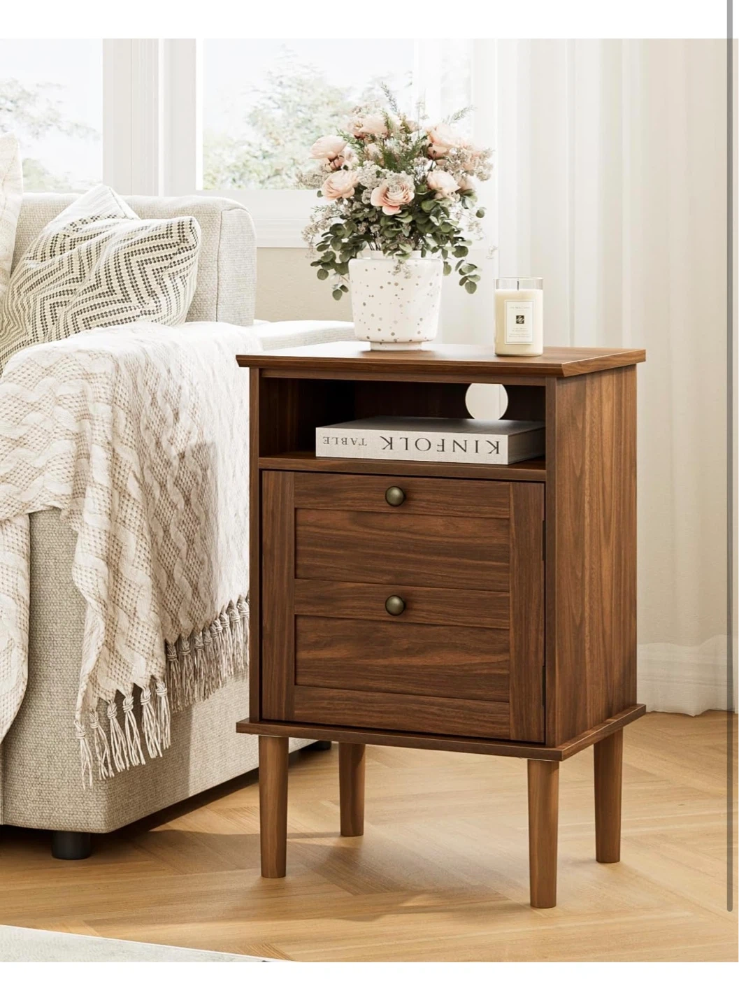 Apetaccat Walnut Finish Nightstand with 2 Drawers and Open Shelf