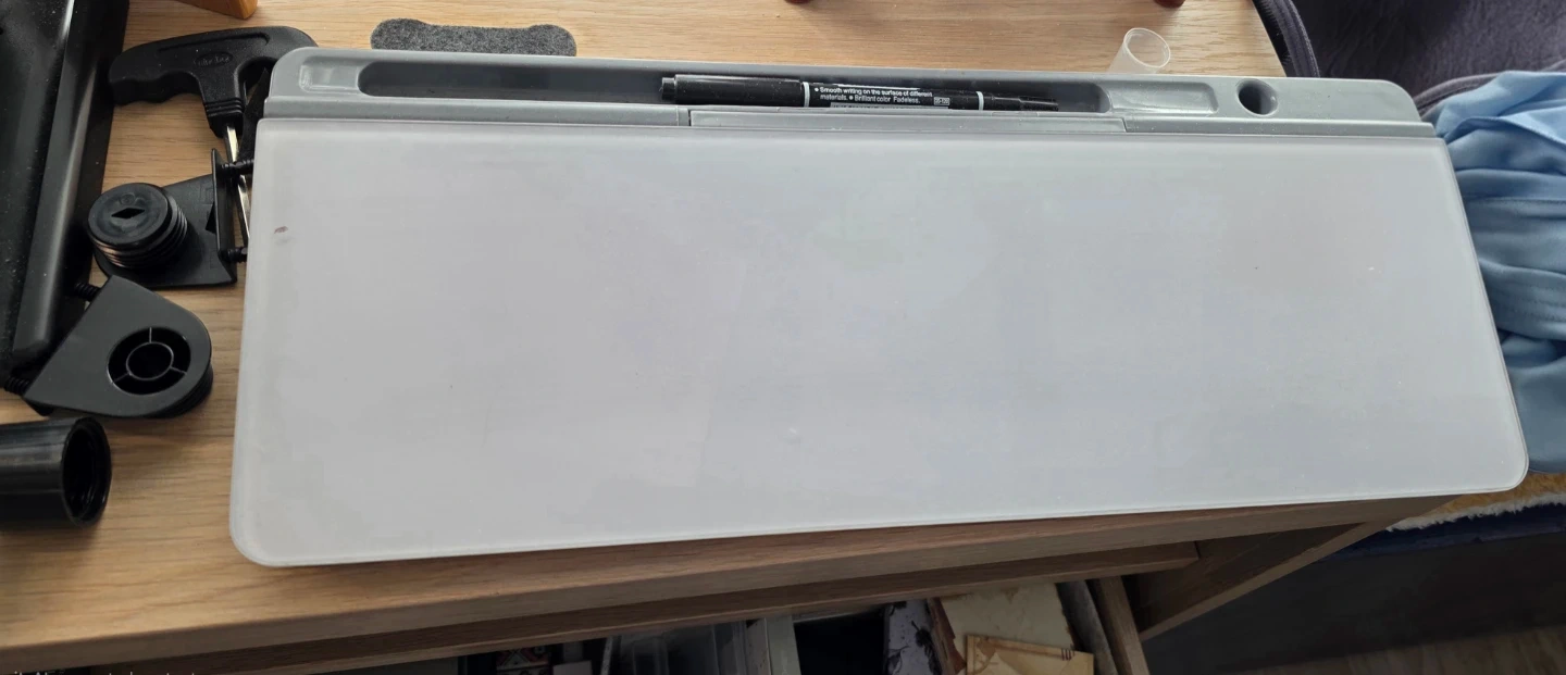 Perfect addition to your workspace. Pen has dried up but you can use any dry or wet erase pen marker to write. I have wet erase extra pen. I can provide one to start.