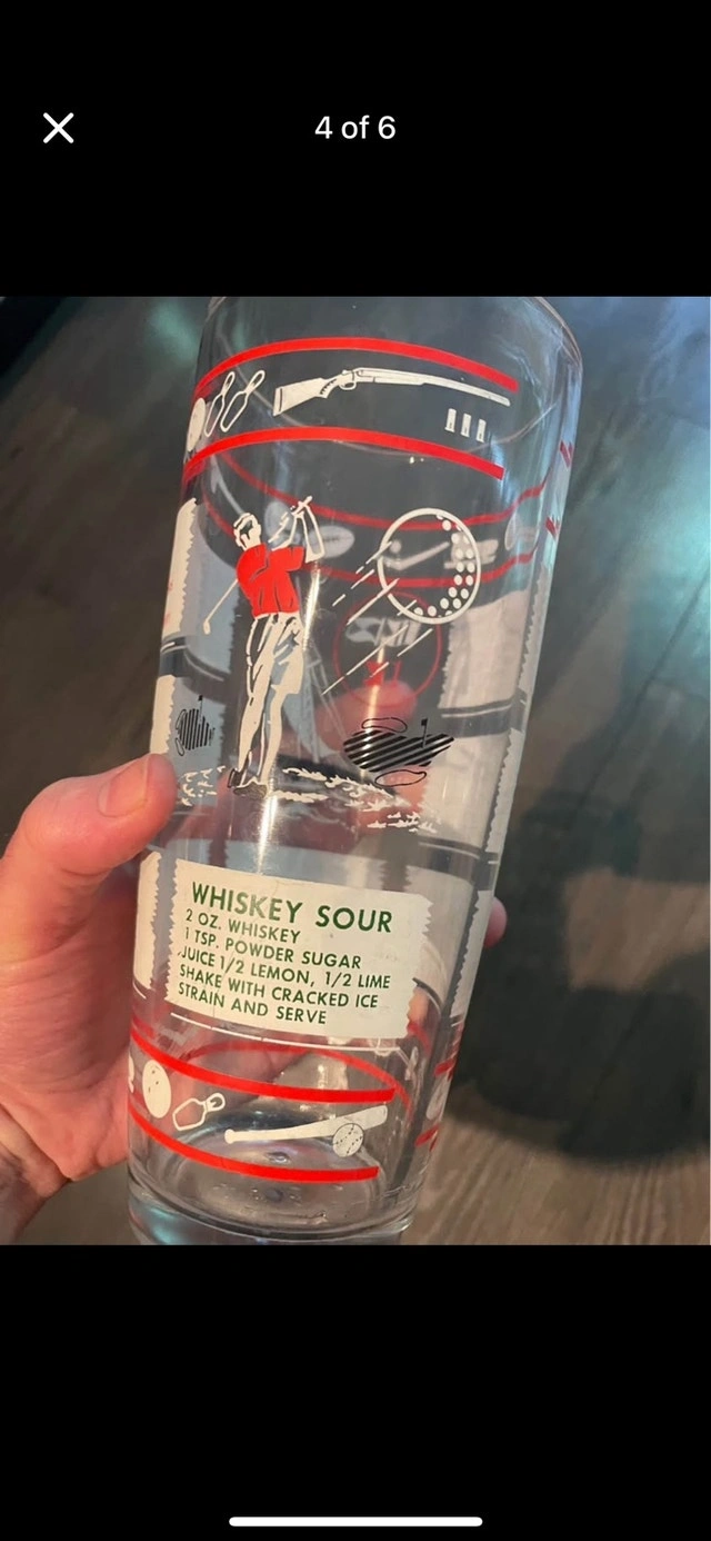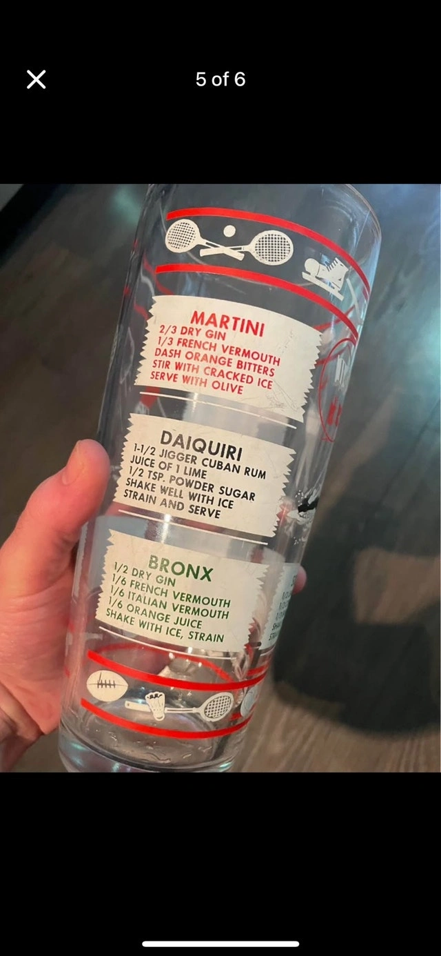 Add a touch of vintage charm to your barware collection with this used cocktail recipe glass, perfect for mixing your favourite drinks with a touch of retro flair. Featuring classic cocktail recipes right on the glass, it's both functional and a great conversation starter!