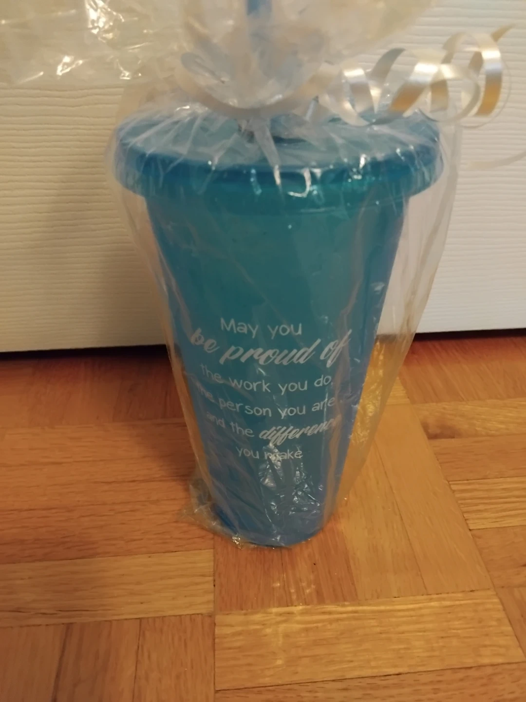This blue tumbler features an inspirational quote: "May you be proud of the work you do, the person you are, and the difference you make". It's perfect for your daily beverages. It comes with a straw and is nicely gift-wrapped.