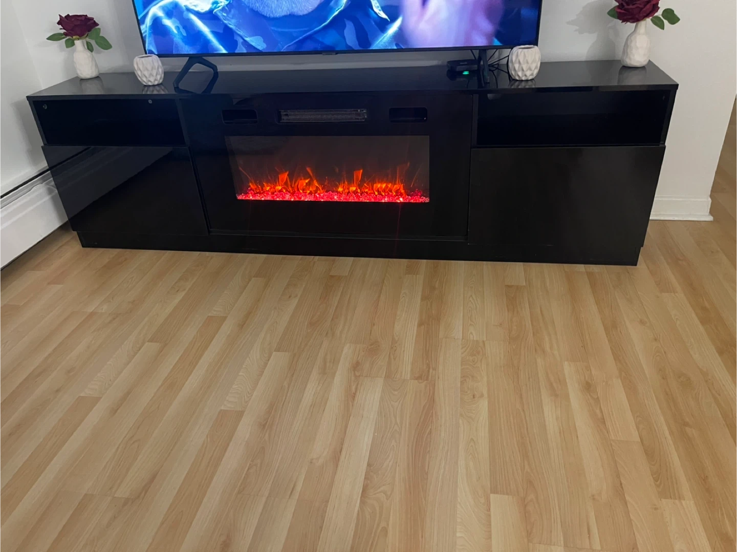 Black Electric Fireplace Media Console