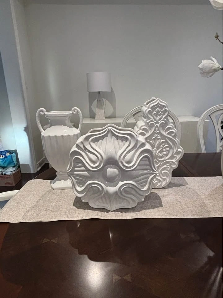 Beautiful neutral decorative pieces that work well on a shelf, buffet, or table. Selling as a set because I’m redecorating. Excellent condition. Pickup in Stouffville.