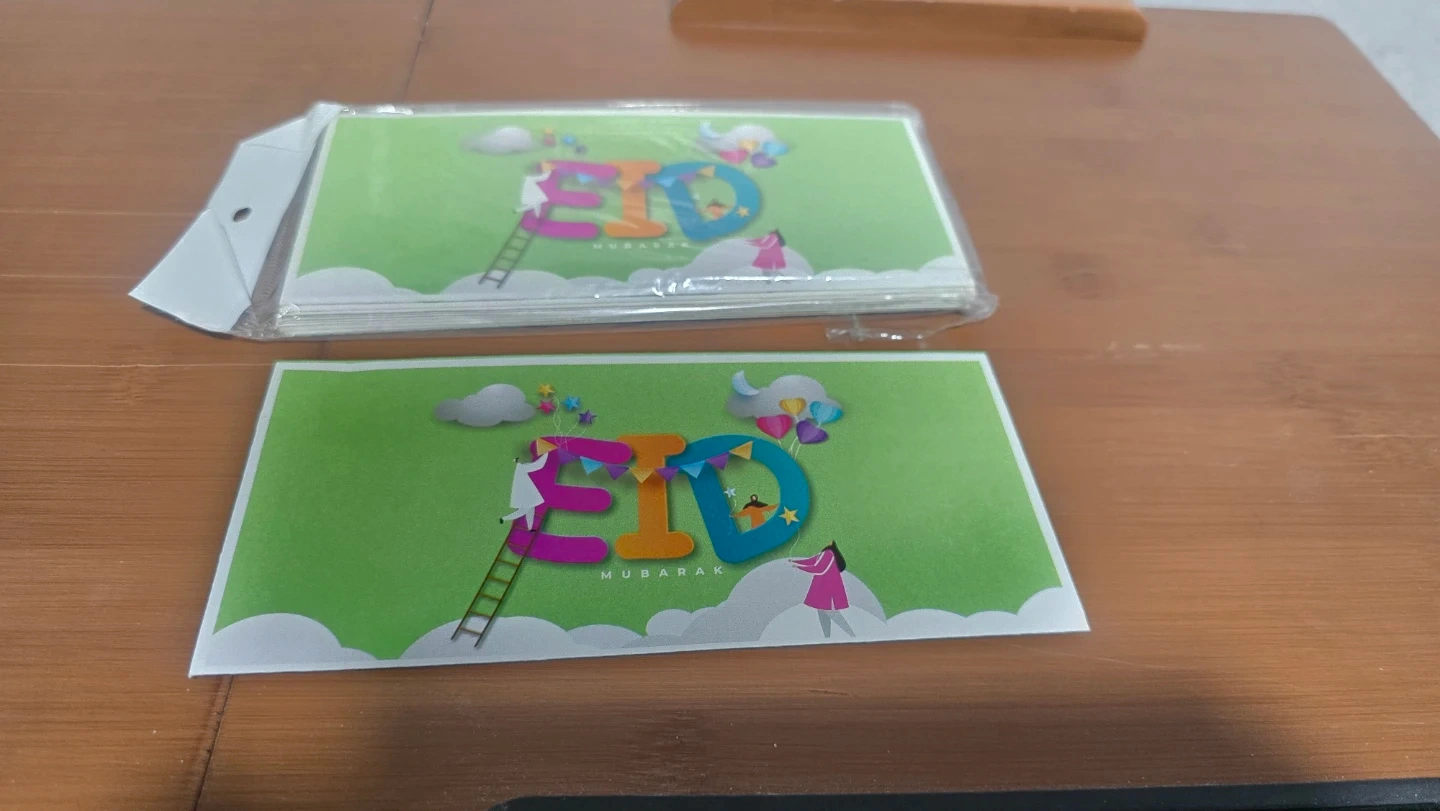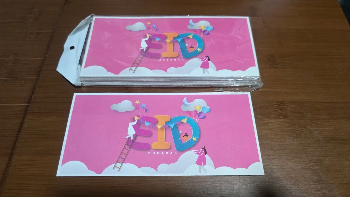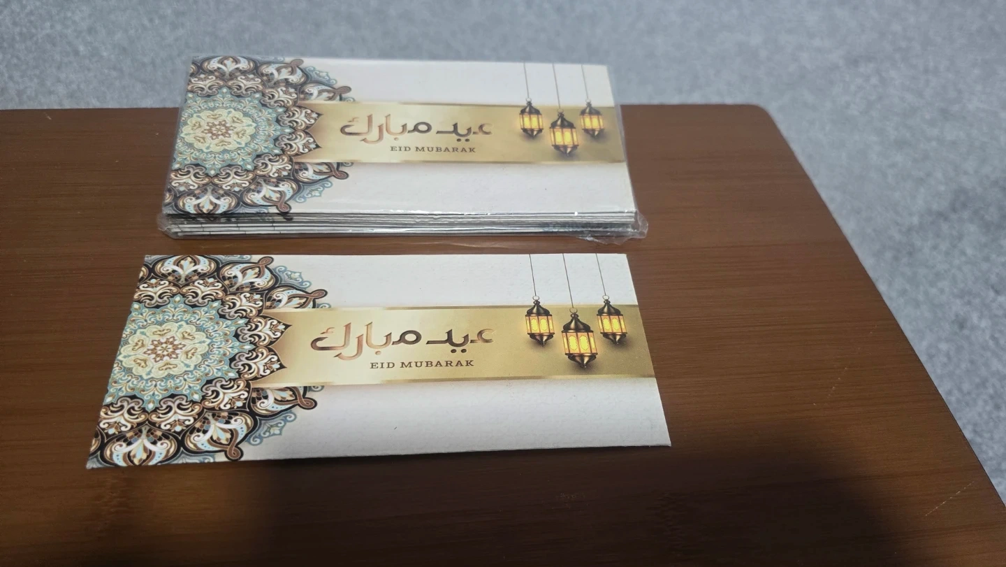 A pack of assorted Eid Mubarak greeting cards, perfect for sending well wishes during the festive season. Each card features a unique design suitable for the occasion.