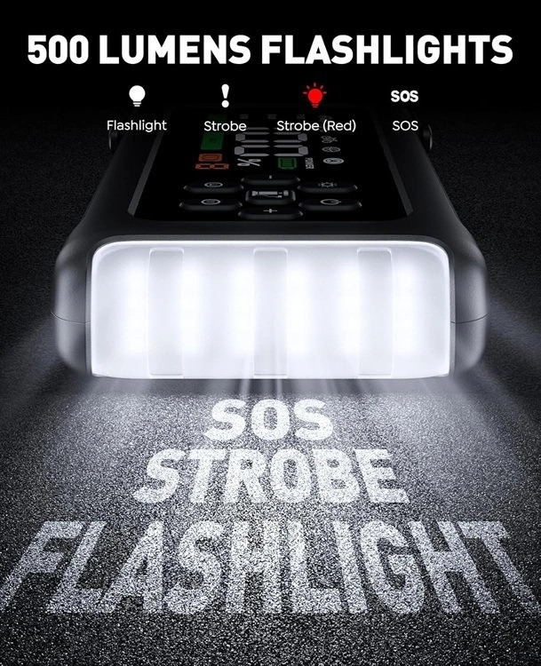 This is a versatile 9-in-1 jump starter pack for your car. It functions as a jump starter for dead batteries, a tire inflator with a 150PSI air compressor and smart display, a portable power bank, and includes a bright flashlight with SOS and strobe functions for emergencies. It can start most gas engines up to 9L diesel and works in temperatures from -20℃ to 60℃. The compressor inflates a tire quickly and has preset modes. It also comes with insulated gloves for safety. Great for everyday use and unexpected roadside issues.