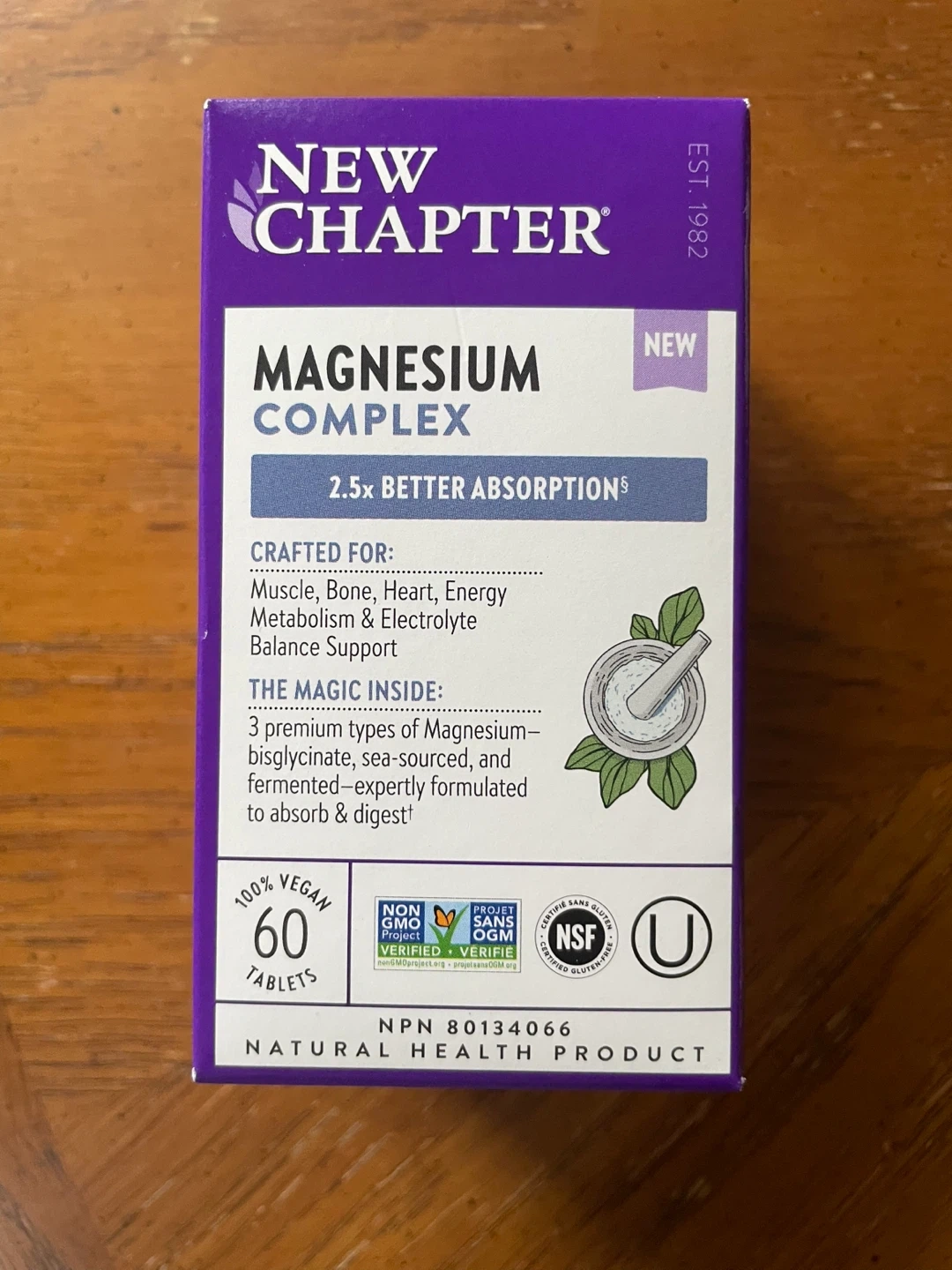 New Chapter Magnesium Complex with 2.5x better absorption. Crafted for muscle, bone, heart, energy metabolism and electrolyte balance support. It's made with 3 premium types of Magnesium—bisglycinate, sea-sourced, and fermented. This formula is expertly formulated to absorb and digest. 60 vegan tablets included. Brand new and sealed.