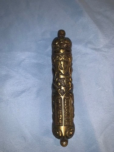Vintage Solid Brass Mezuzah Cover (No Scroll) 10 Commandments