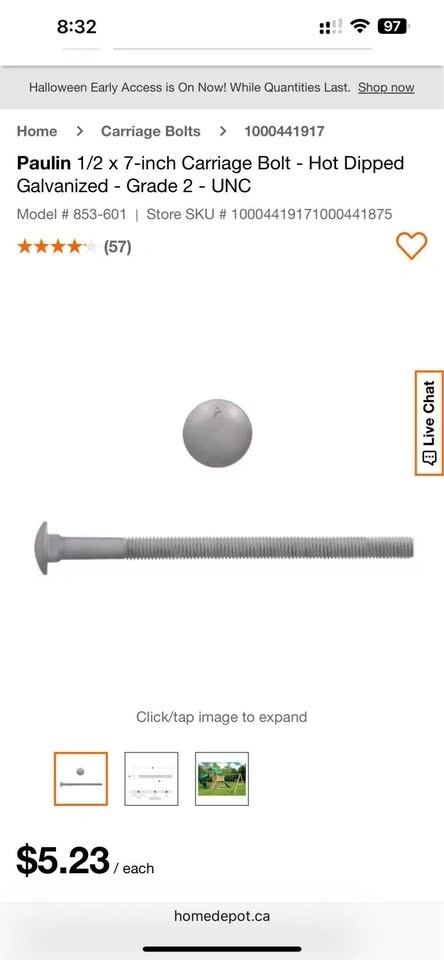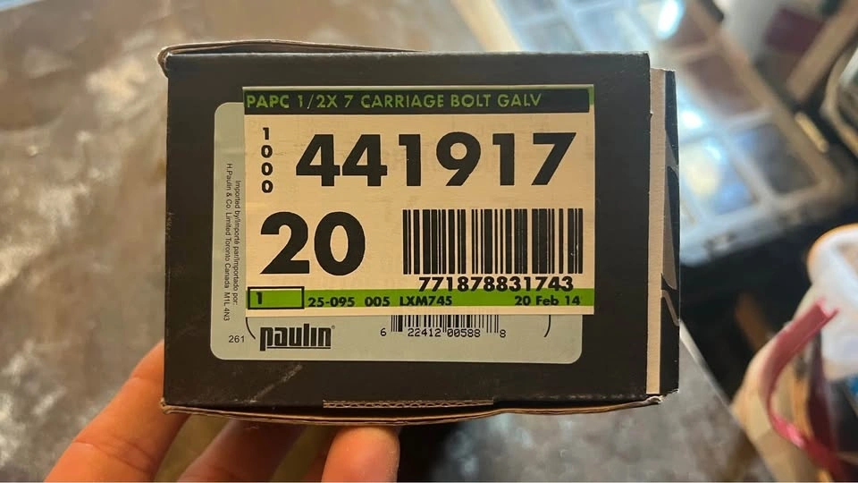 Hot Dipped Galvanized Carriage Bolts 7”x 1/2” — 2 Boxes of 20. New Price per Box - $110. Asking - $50 per box.