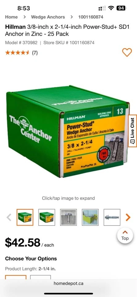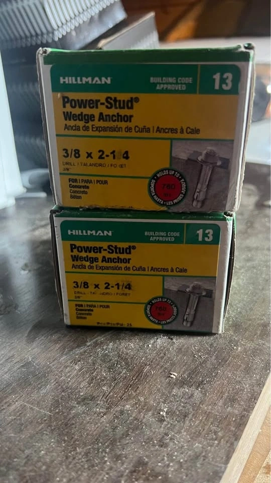 Power-Stud Wedge Anchor 3/8 x 2-1/4. 2 Boxes of 25 pieces each. New Price Per Box - $42.58. Asking $20 per box.