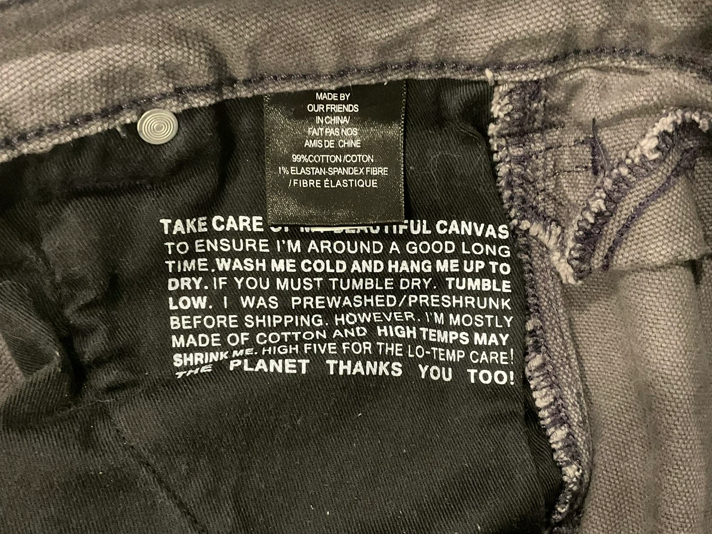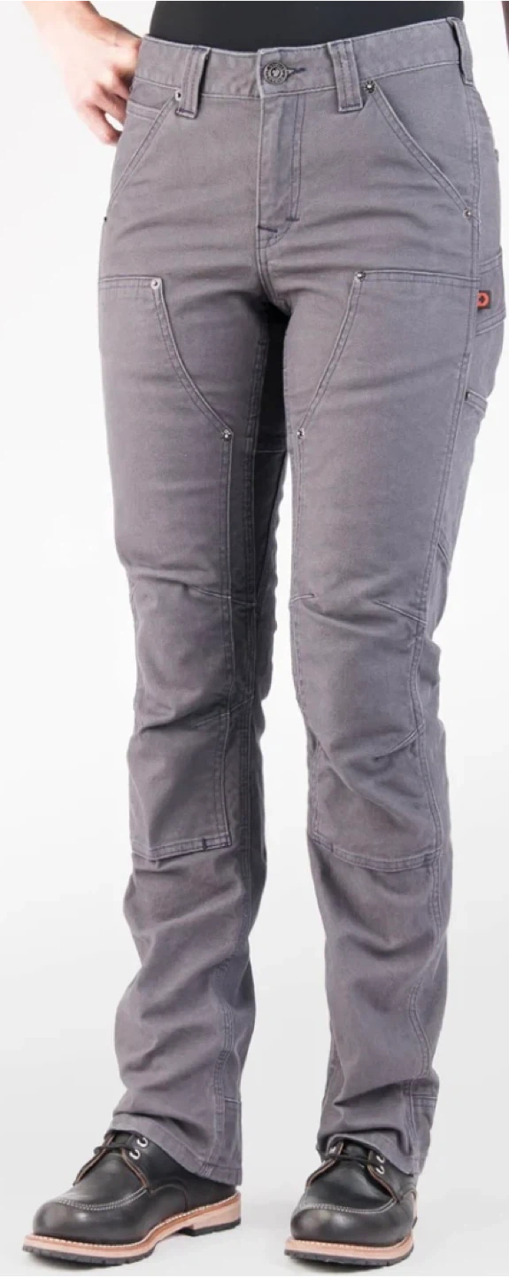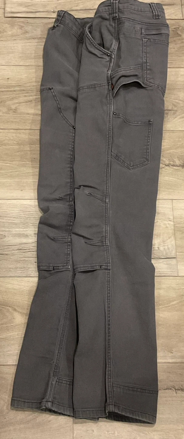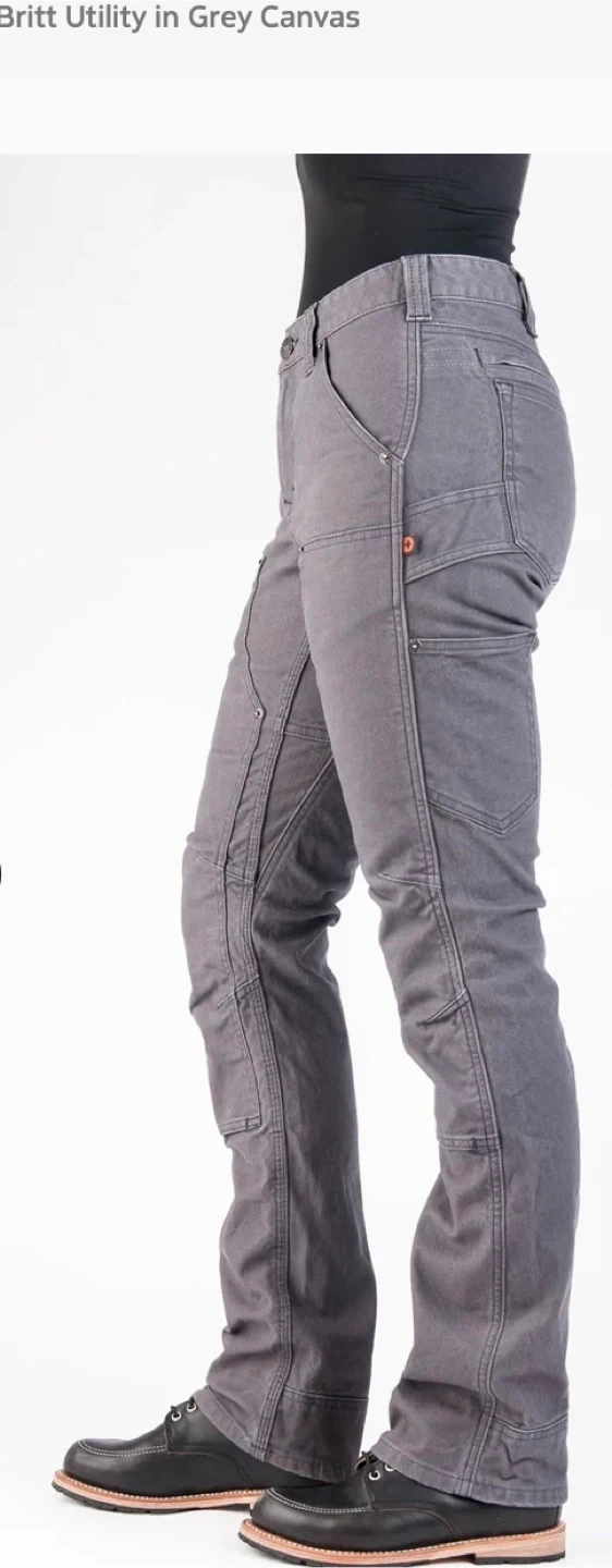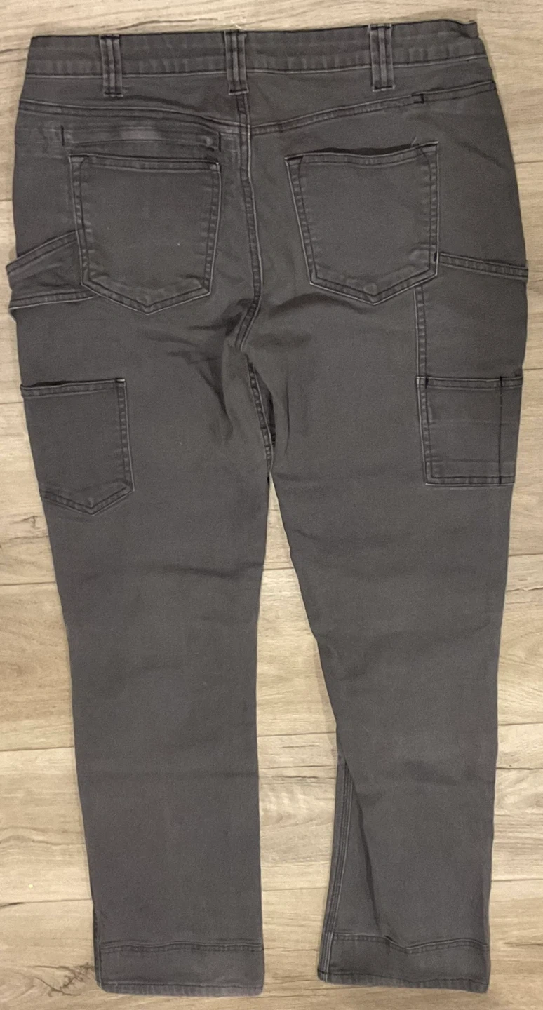 Selling a pair of Dovetail Workwear Britt Utility pants in size 14/34. They're a stylish and functional option for work or everyday wear. The pants are made of durable grey canvas material and feature multiple utility pockets for added convenience