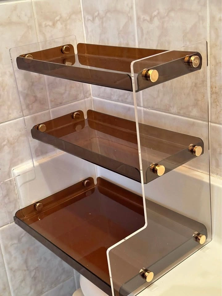 Add a touch of contemporary elegance to your home or office with this Amber & Clear Acrylic Display Shelf. This isn't just an organizer; it’s a piece of decor! Features sophisticated clear architectural side panels with rich amber-toned trays. Each tier has raised edges to keep items secure. Ideal for skincare/beauty products, perfumes, desk stationery, or small plants. Pick up only.