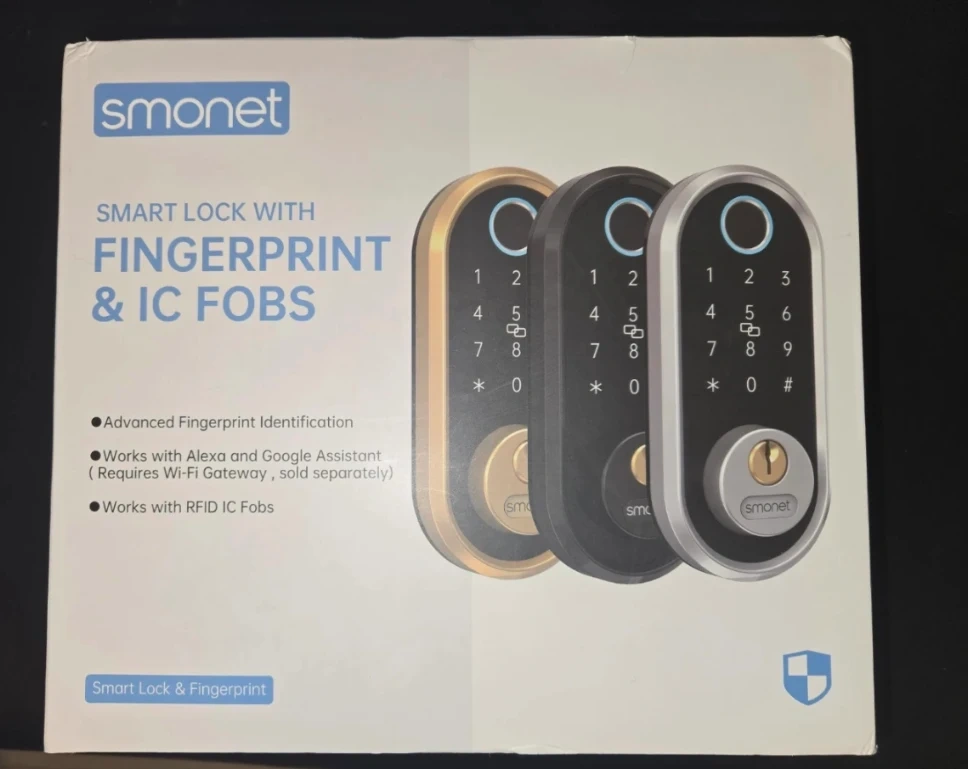 Selling a brand new Smonet Smart Lock with Fingerprint & IC Fobs! This smart lock features advanced fingerprint identification and works with Alexa and Google Assistant (requires Wi-Fi gateway, sold separately). It also works with RFID IC Fobs. The box includes the Smart Lock Manual and all components for installation.