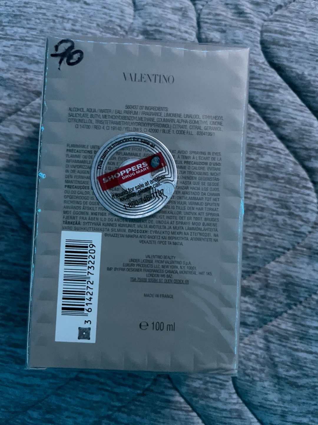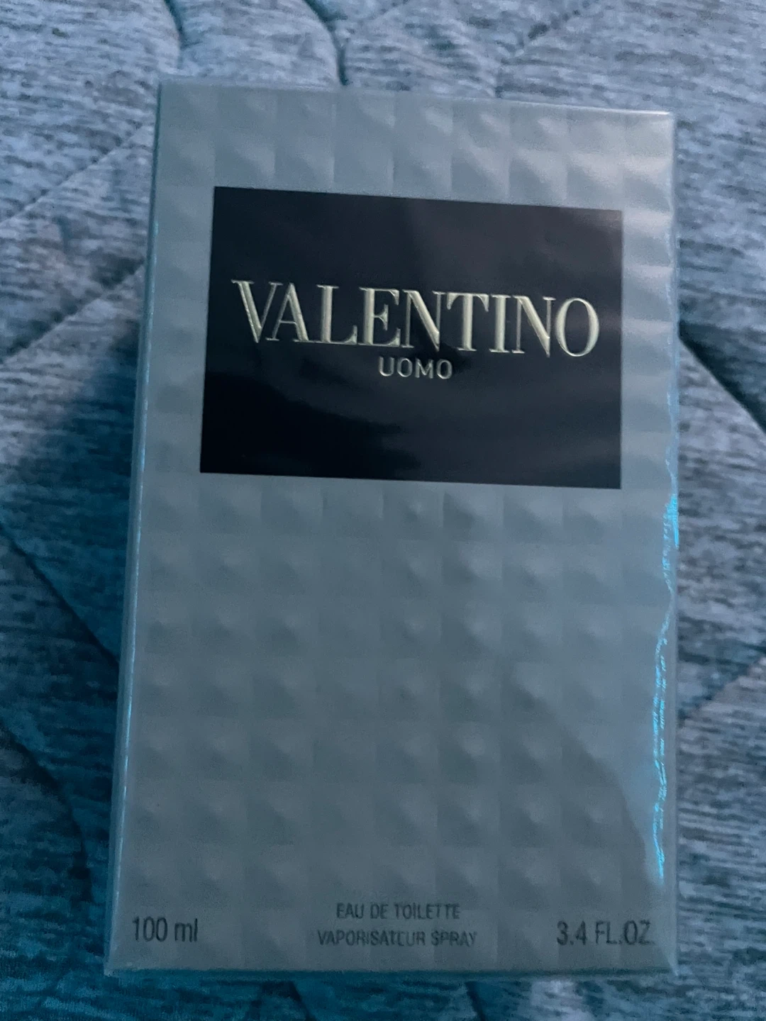 Valentino Uomo Eau de Toilette spray. It's a 100 ml (3.4 fl.oz) bottle. Made in France.