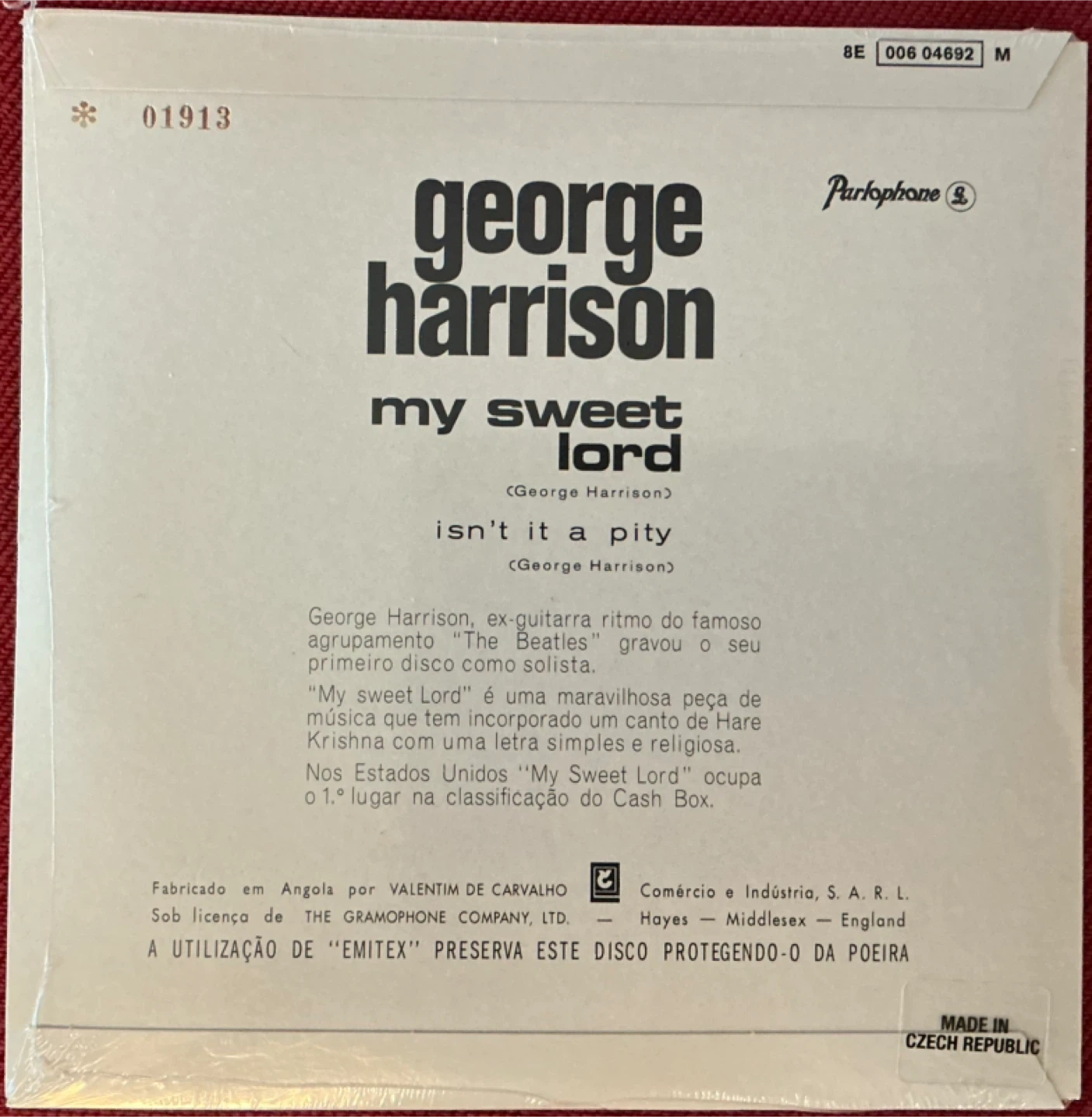 This is a numbered limited edition clear vinyl reissue of George Harrison's 1970 single 'My Sweet Lord'. It includes the B-side 'Isn't It A Pity'. This edition was released for RSD Black Friday.