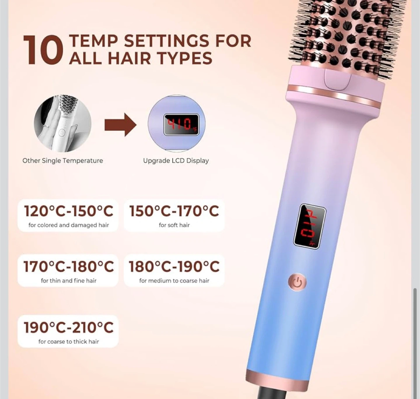 Thermal Brush,Blowout brushs,10 Temperatures LCD Display Upgrade to 400°F 1.5 in Heated Round-Brush Curling Iron Heated Ceramic Tourmaline Ionic Comb 110-240V Volum for Any Hair Type