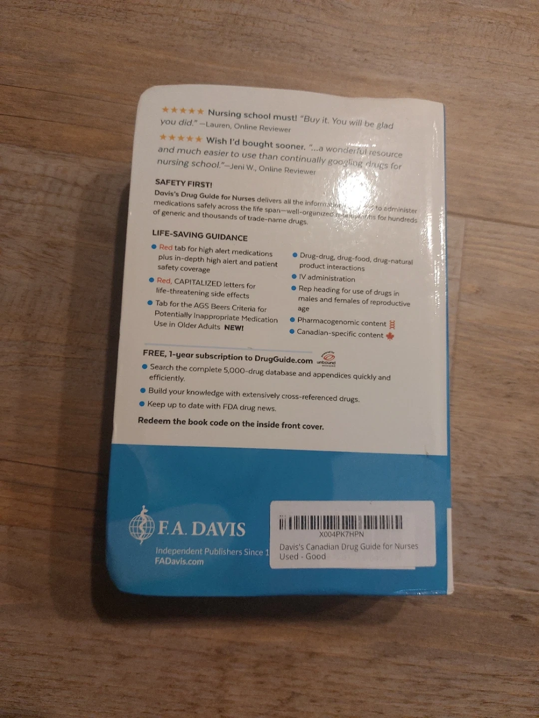 Davis's Canadian Drug Guide for Nurses, Seventeenth Edition. This resource covers drug, drug-food, and drug-natural product interactions. It also includes information on IV administration and drug use in males and females of reproductive age. Contains Canadian-specific content.