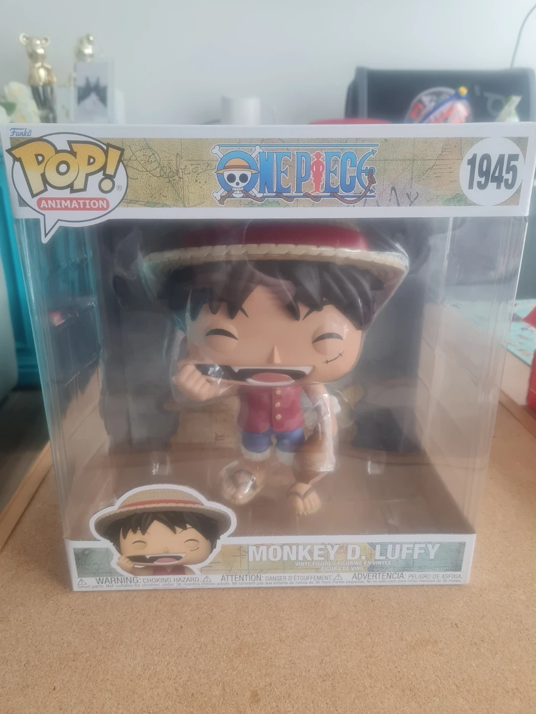 This is a Funko Pop! Animation vinyl figure of Monkey D. Luffy from One Piece. It's model number 1945. The figure comes in its original box. This collectible would be great for any anime fan!