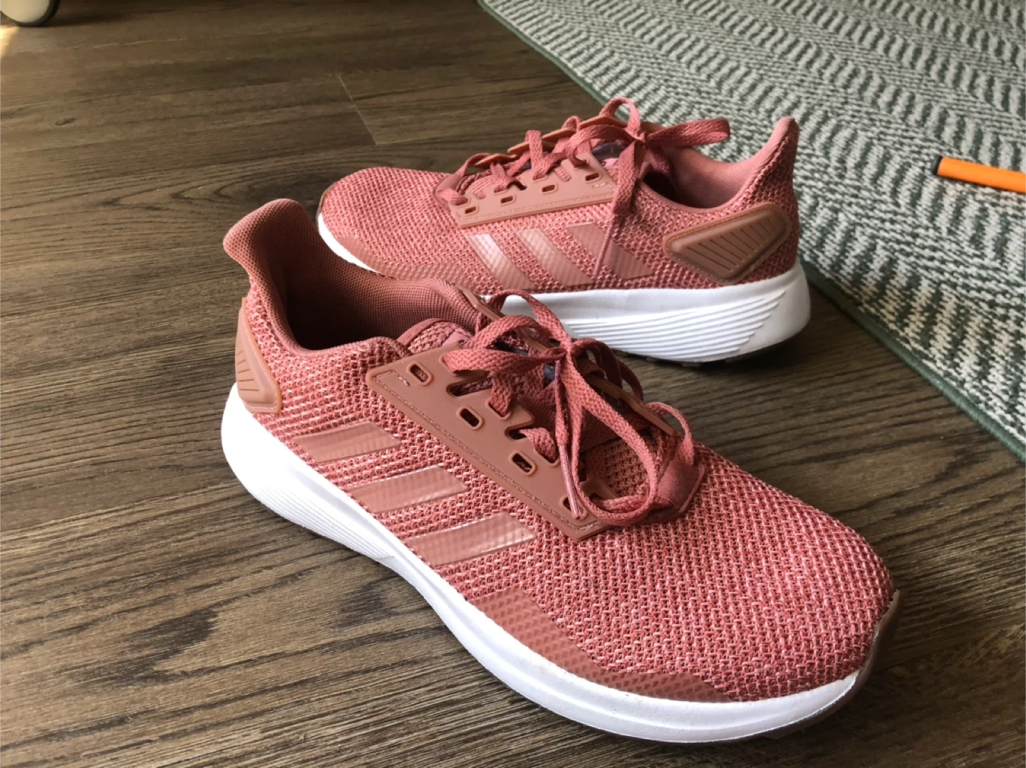These Adidas running shoes are a lovely rose pink colour. They feature a breathable mesh upper and a durable rubber outsole for great traction. Perfect for your daily runs or athleisure wear, very good used condition size 7 $20 thanks.