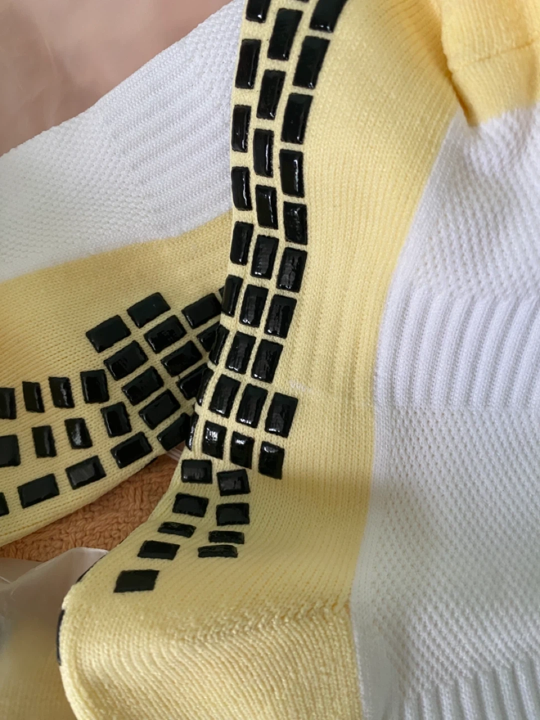 Get a better grip with these white soccer socks featuring anti-slip rubber pads. They're designed for a tighter fit and offer arch support. The breathable mesh keeps your feet cool during play!