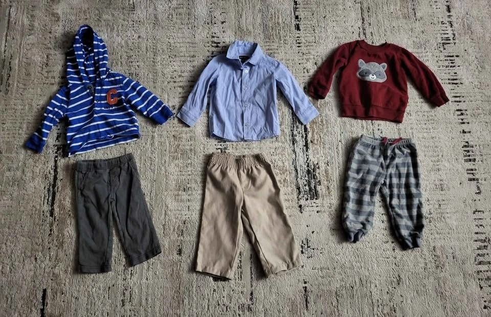 Boys 9-12 months fall/winter clothes lot. Mostly Carters brand. Excellent condition. Cash only. If ad is up, it's available. Check out my other postings for different sizes. Includes: 2 Sleepers, 4 long sleeve pajamas, 9 long sleeve tops, 1 long sleeve onesie, 7 bottoms, 3x 2-piece sets.