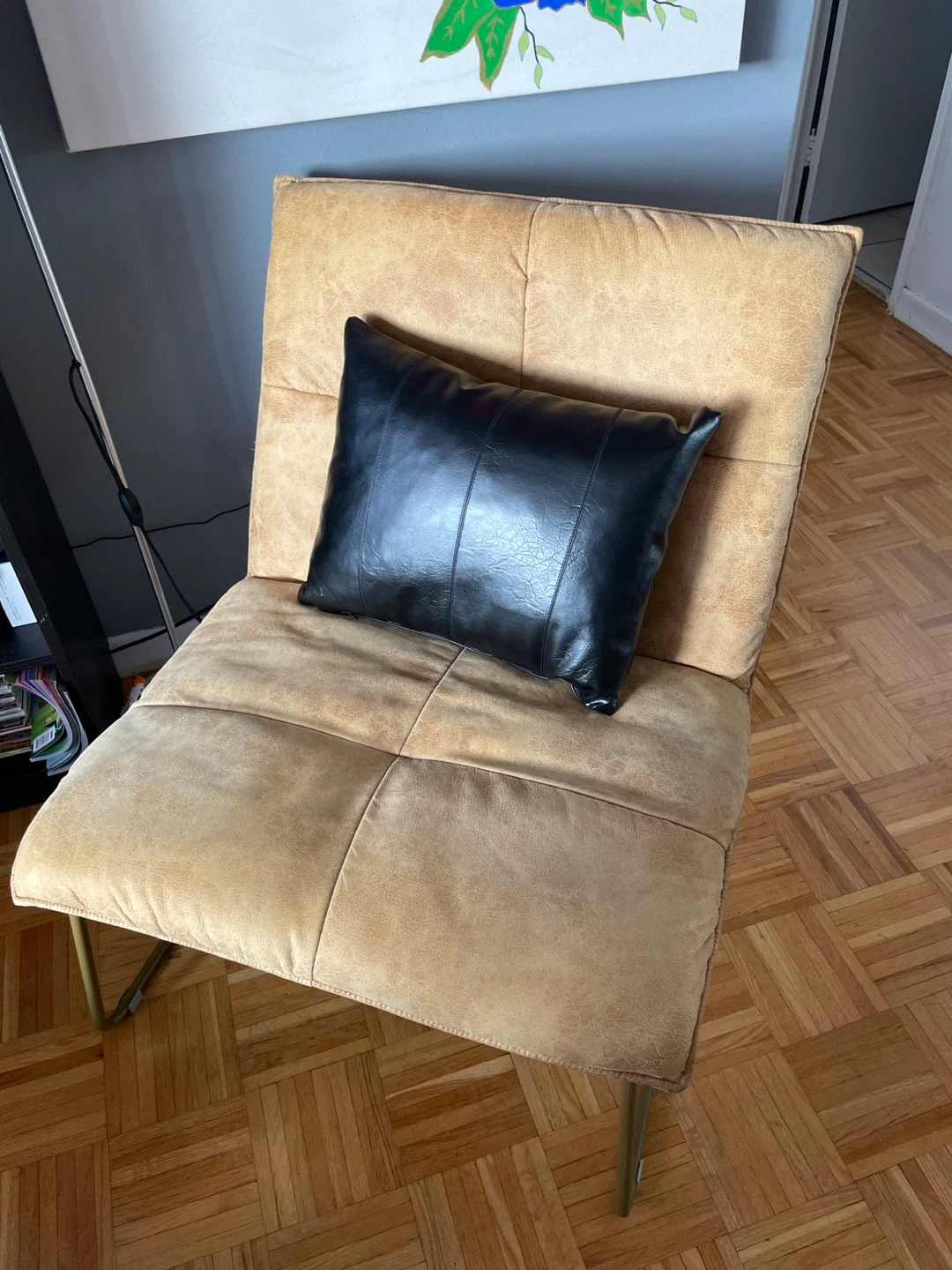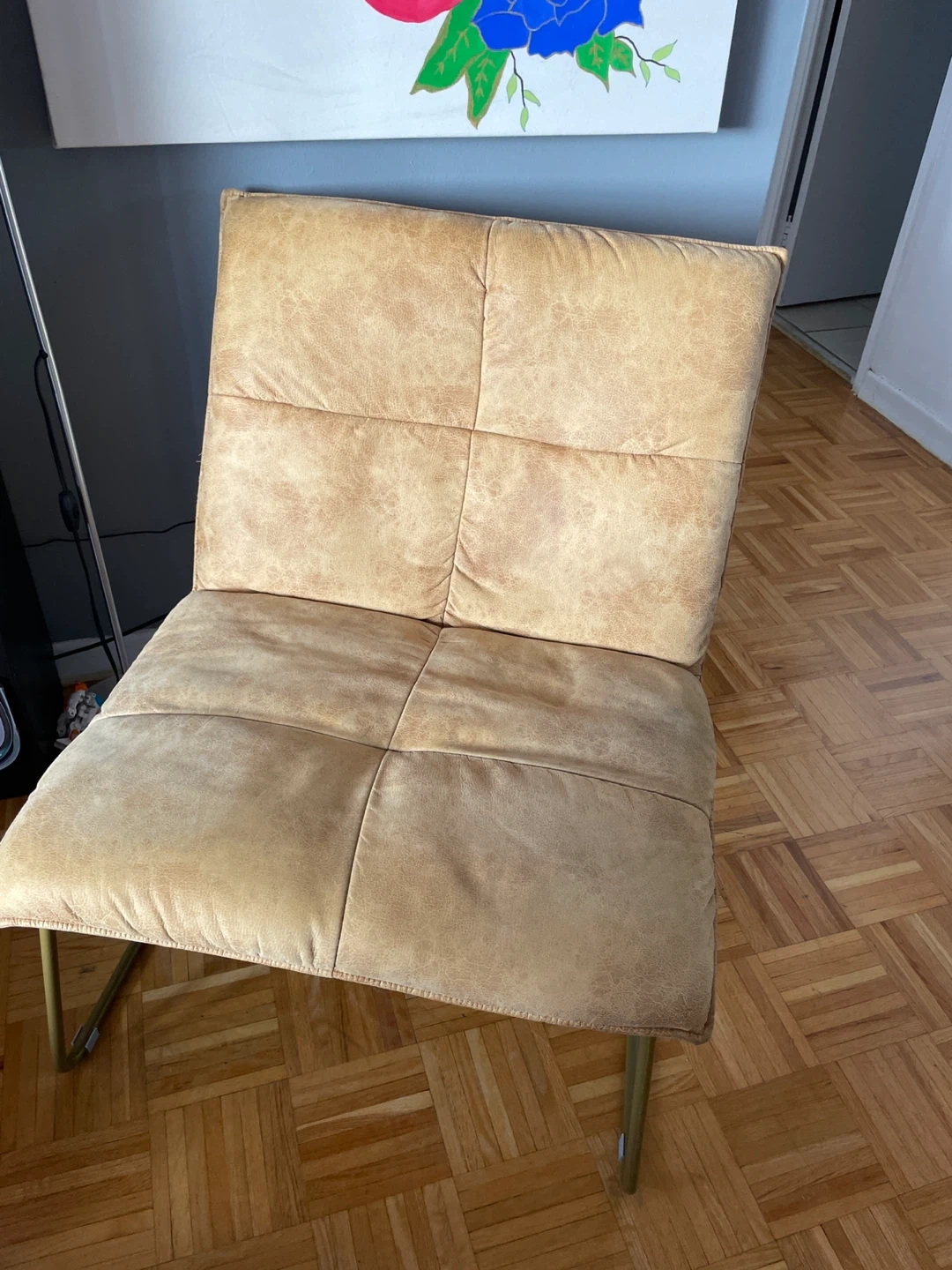Tan Upholstered Accent Chair with Metal Legs