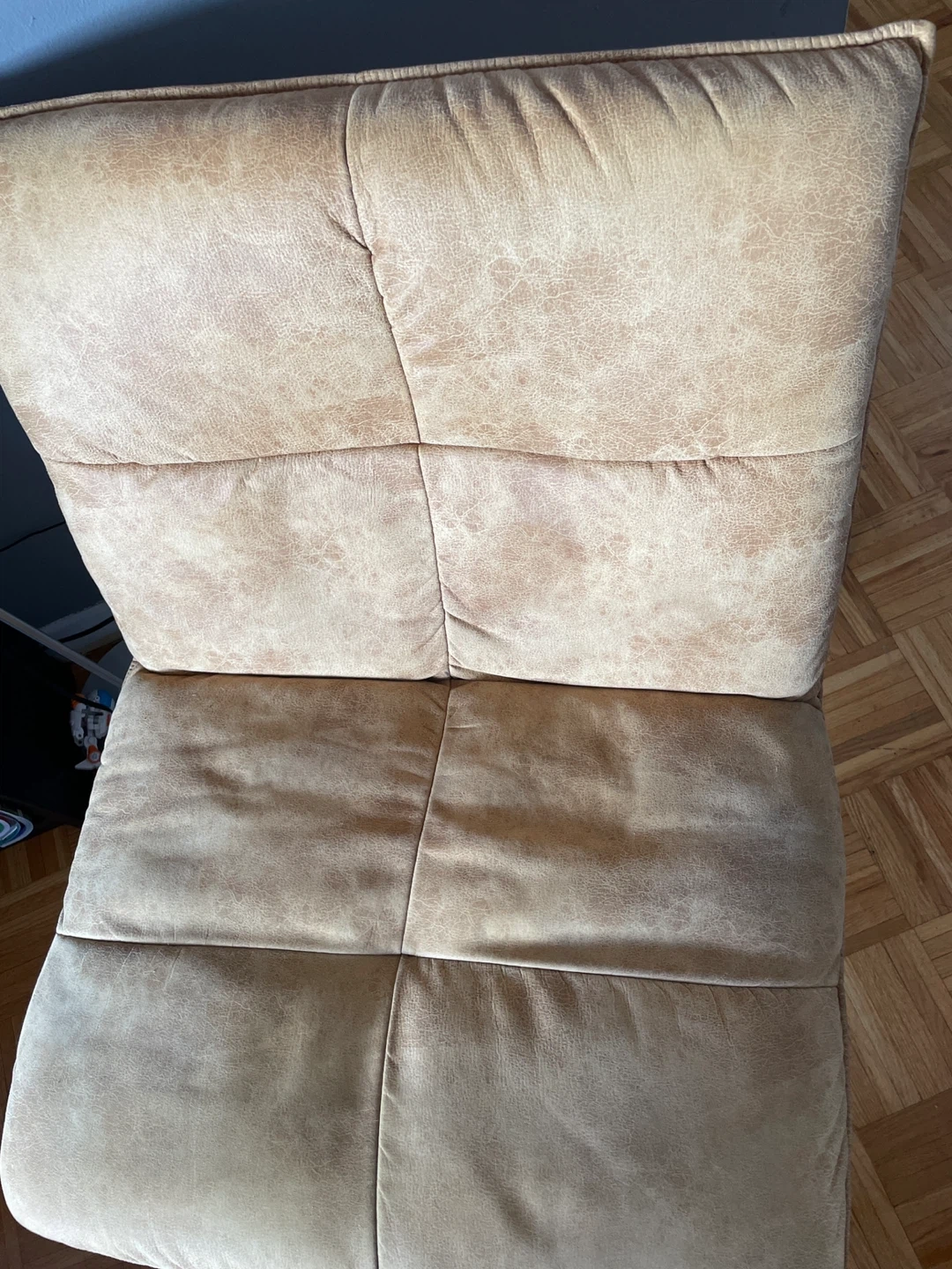 The chair's material appears to be a faux suede or microsuede.
