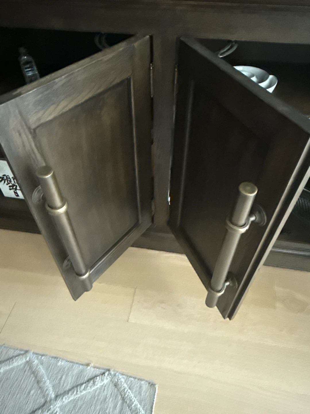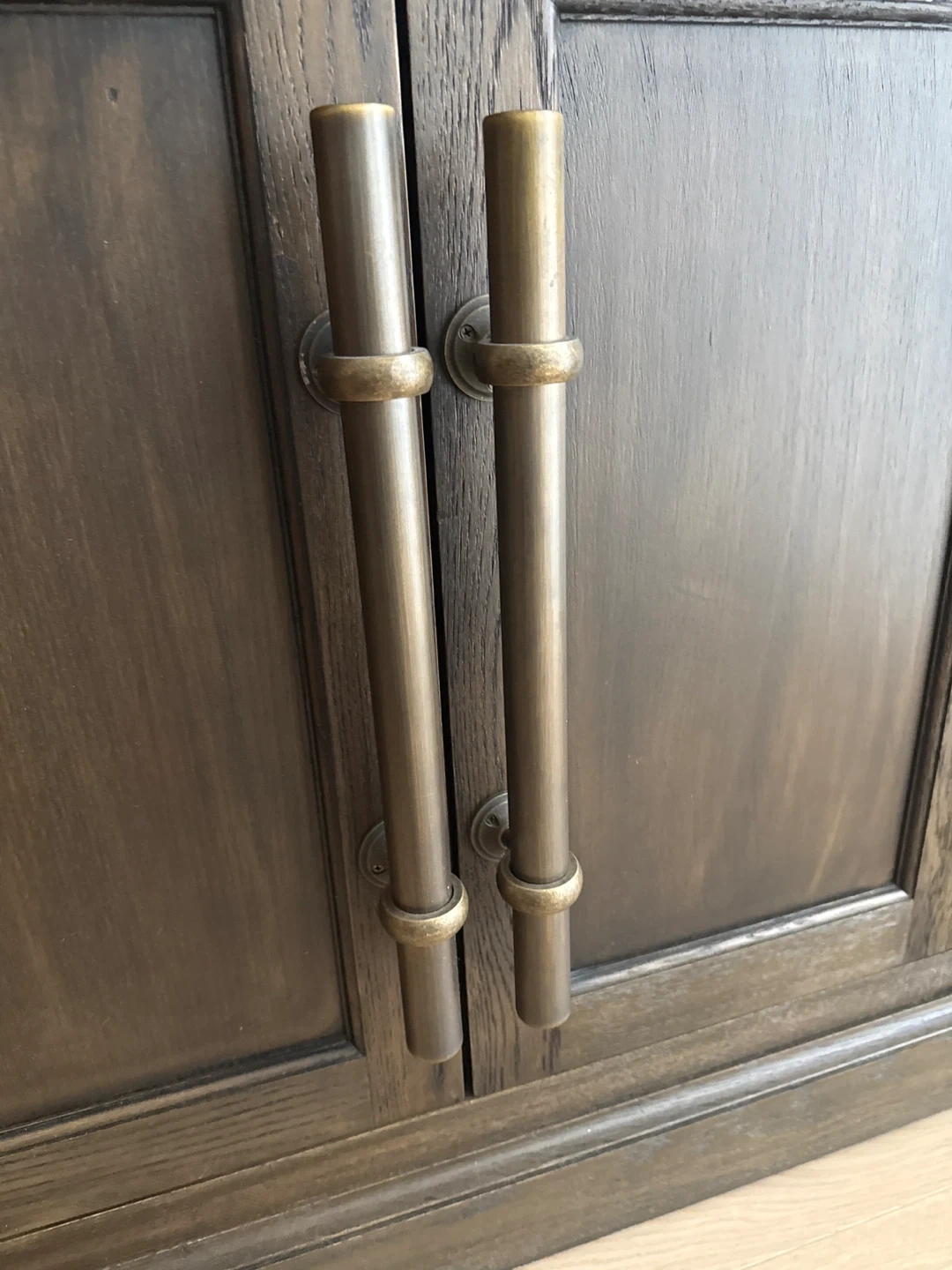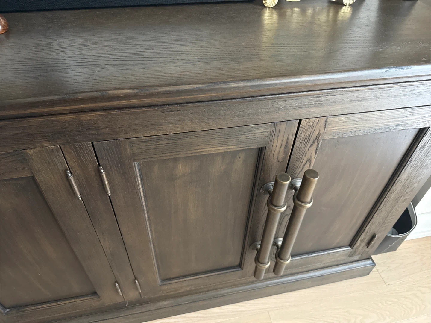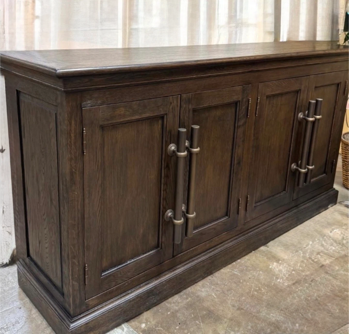 Antiqued Grey Oak and Brown Oak cabinets constructed of solid oak finish constructed of solid hardwood