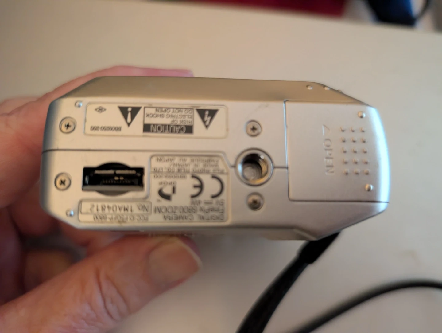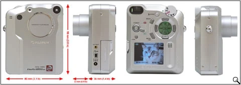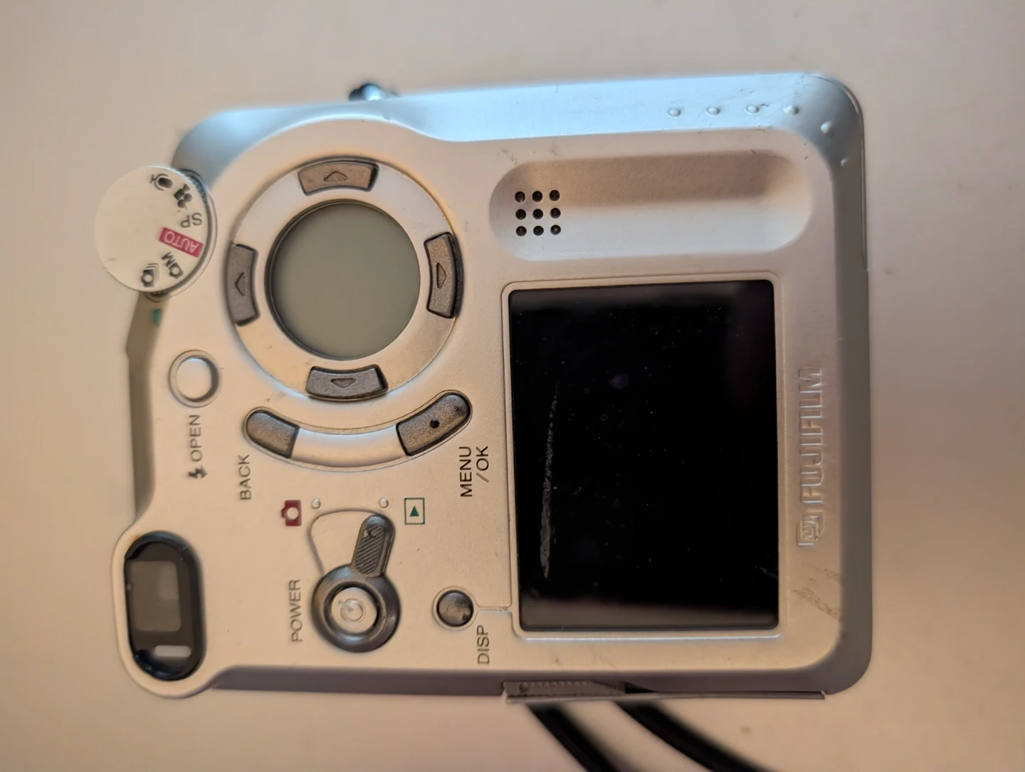 Silver Fujifilm digital camera with 3x optical zoom. Includes USB and A/V out ports. Measures 92mm x 64mm x 34mm. $40