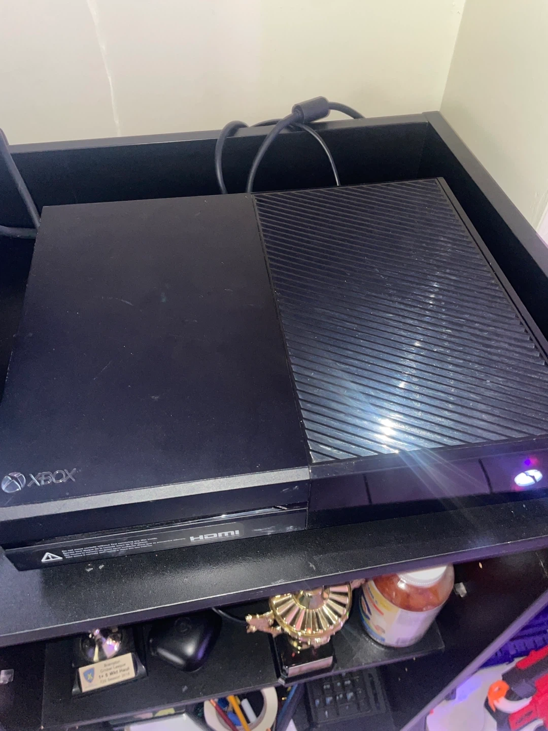Selling a Microsoft Xbox One console along with its black controller and a kinect. It's a great system for gaming and entertainment. Comes with necessary cables for setup.