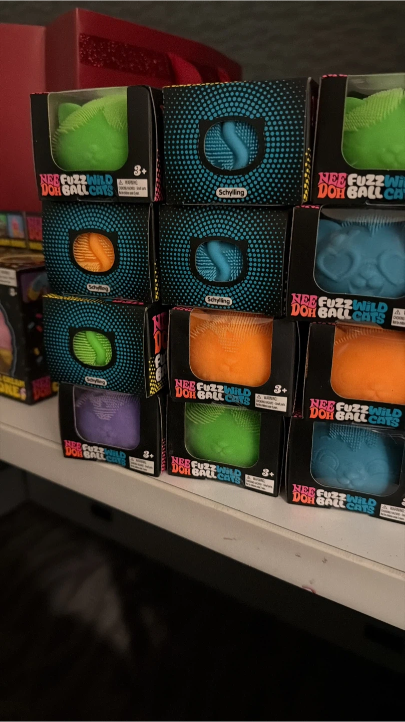Nee Doh Wild Fuzz Ball Cats stress toy from Schylling. Available in various colours, these squishy toys are a fun sensory experience. They're designed for ages 3 and up. This toy is great for stress relief and fidgeting!