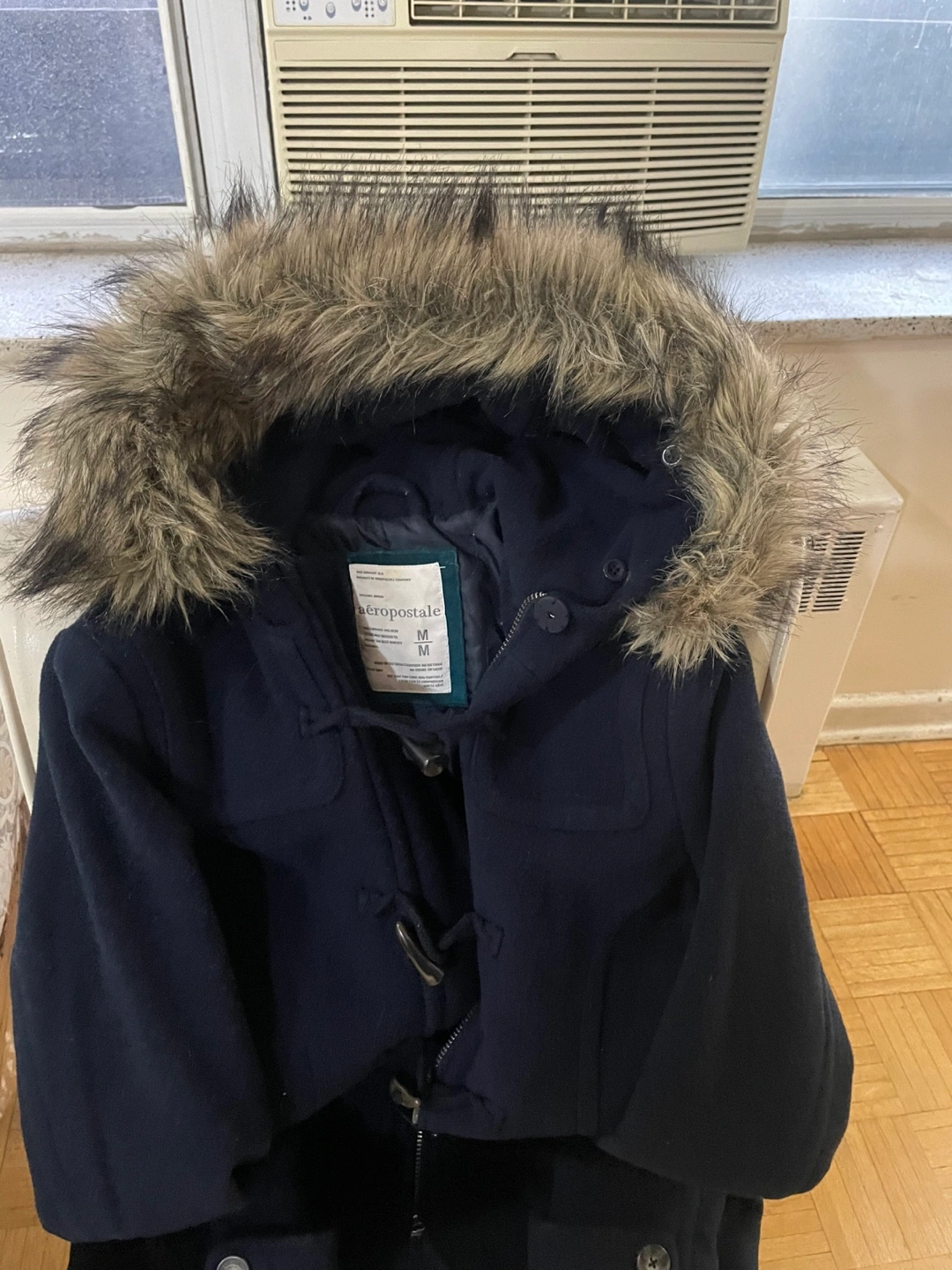 Aeropostale Navy Blue Faux Fur Hood Peacoat