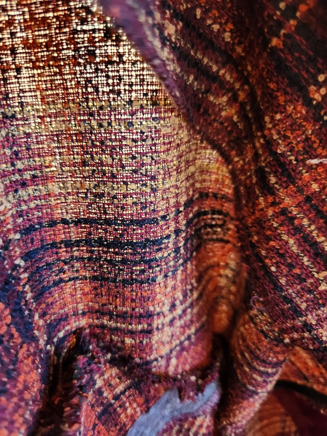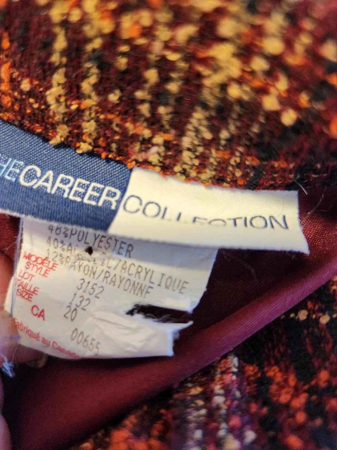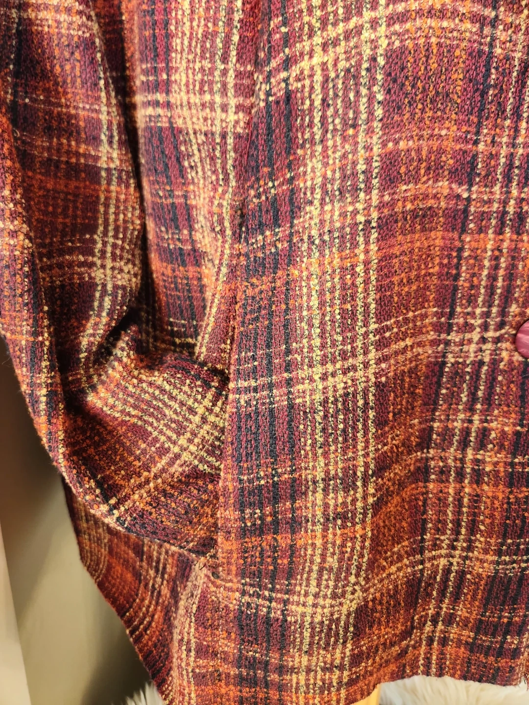 One of Jackie's favorite 1990s blazers! Chic light weight tweed jacket features a classic plaid pattern. This vintage size 20 blazer is perfect with jeans, dress pants or skirts! It has a stylish fringed trim and has convenient Pockets.