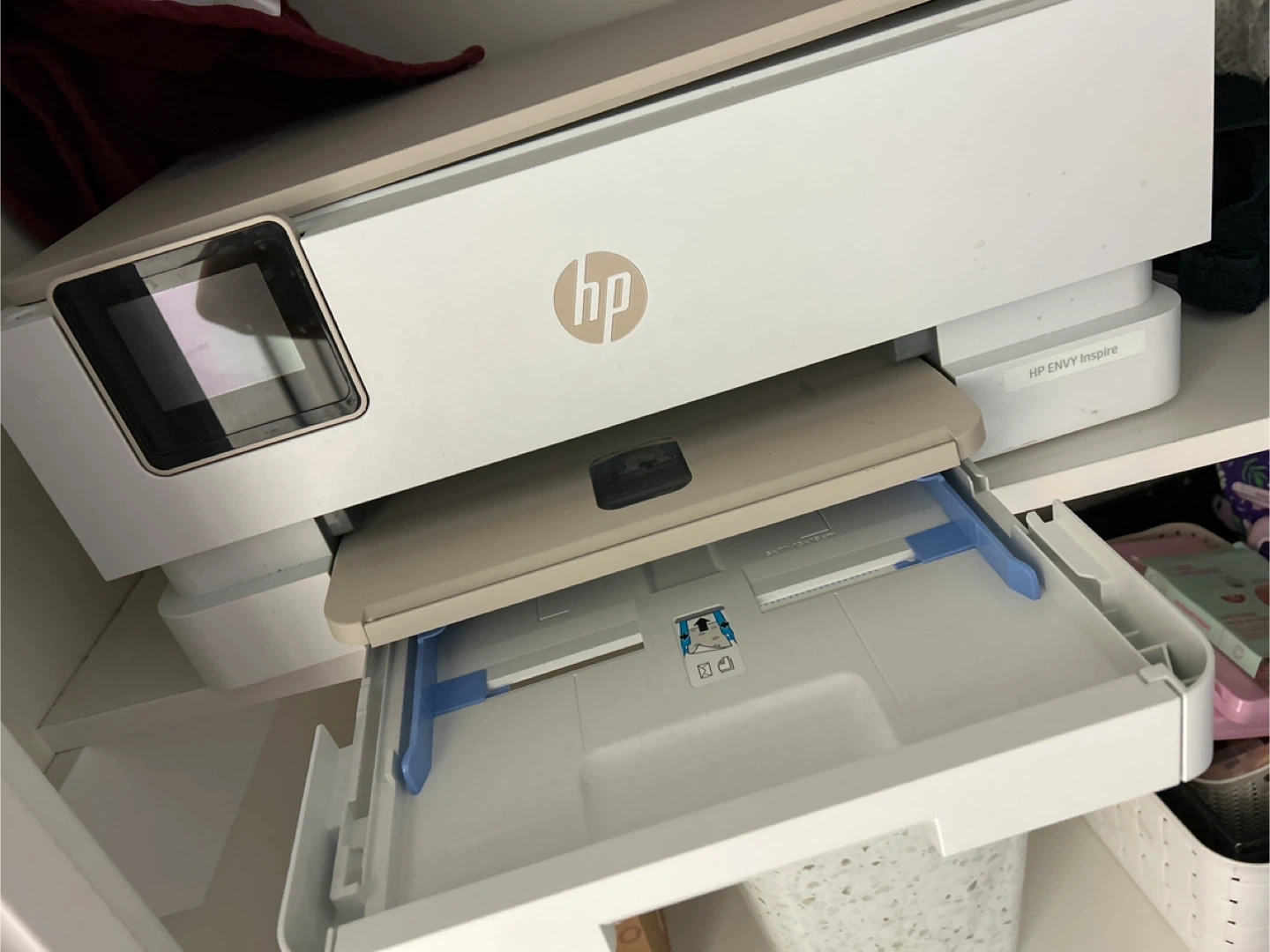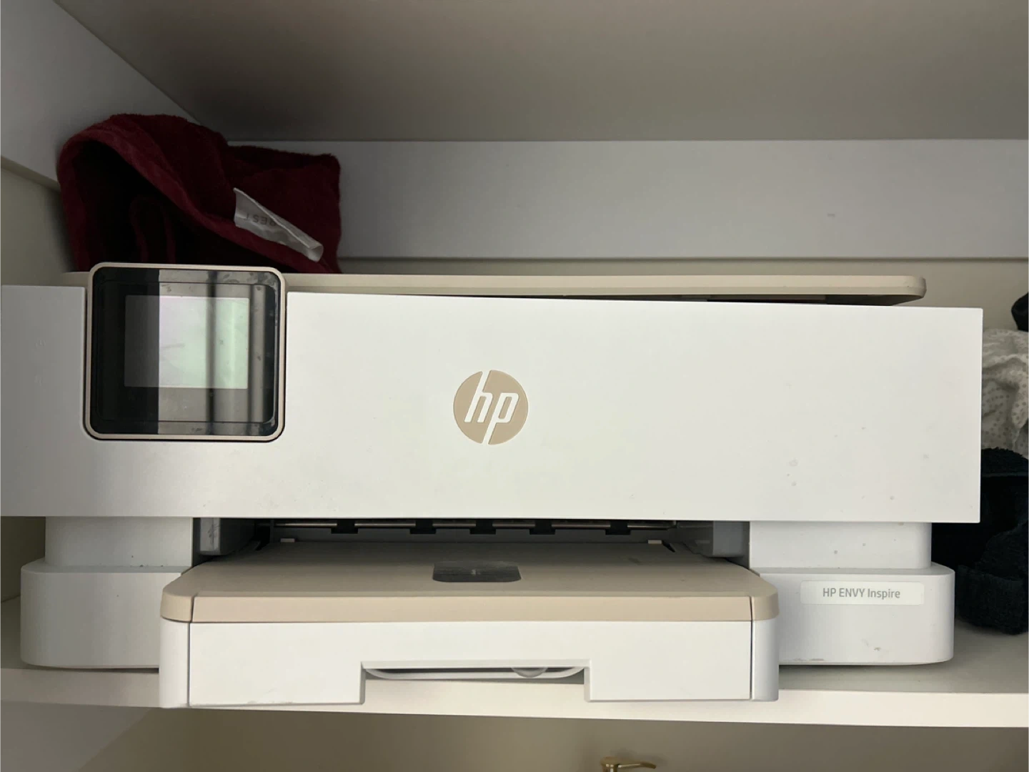 This HP ENVY Inspire printer is a multifunction device. It prints, copies, and scans. It's a clean white colour.