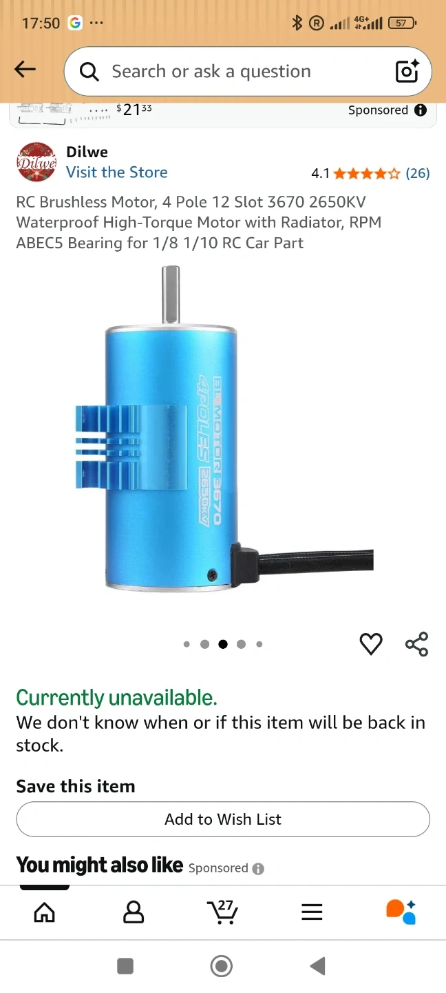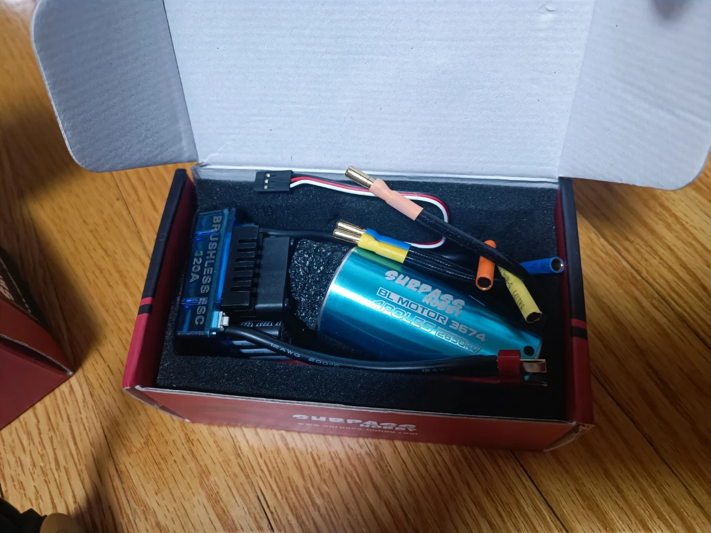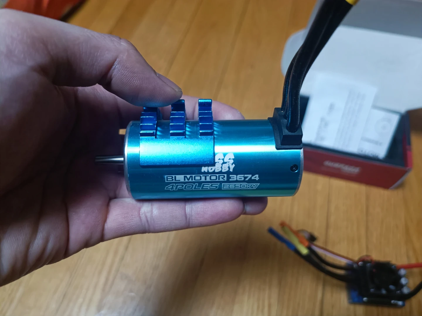 Selling a pair .This is a Surpass Hobby 3674 4-pole 2650KV brushless motor. It's blue and comes with necessary connectors. An ESC is included in the box as well. This motor is suitable for 1/8 and 1/10 RC cars and boats.