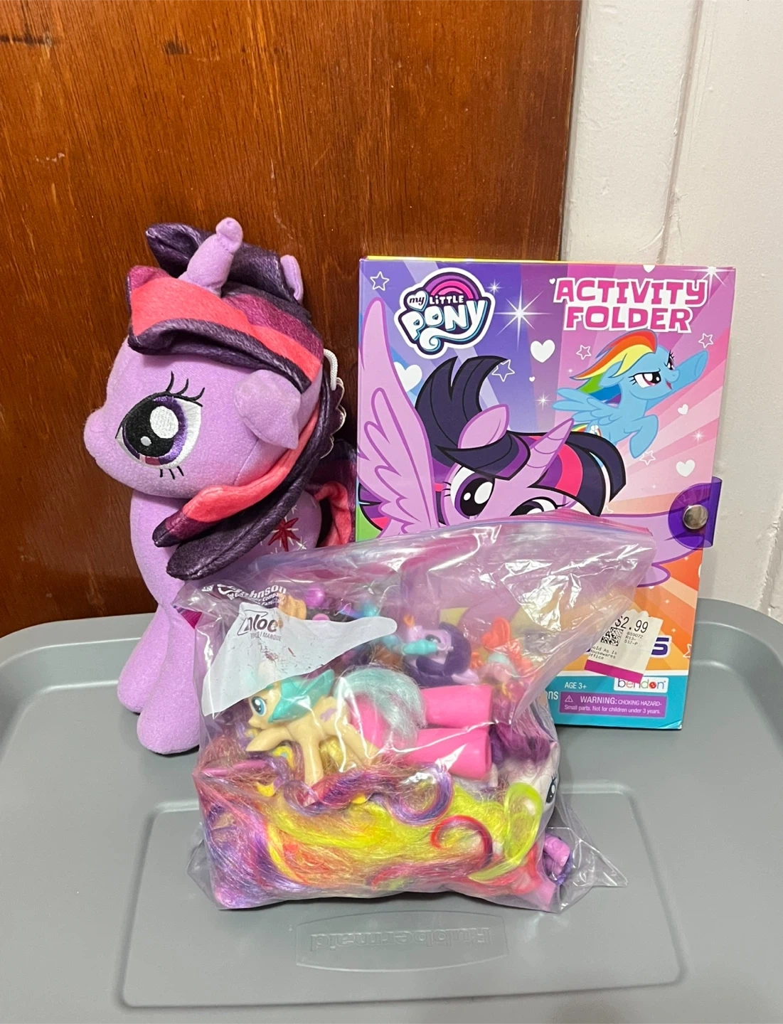 Selling a bundle of My Little Pony toys! Includes several figurines, McDonalds toys, a Twilight Sparkle plushie, and a My Little Pony Activity Folder! Perfect for any MLP fan!
