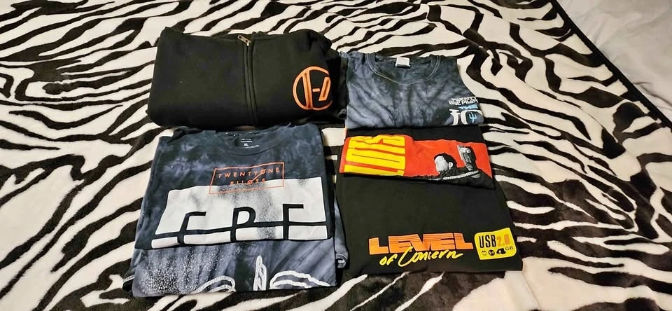 For the fans of TØP, I have a bundle of 2 concert merch shirts, 1 concert merch zip-up, and 3 vintage Twenty One Pilots shirts from the earlier years. Cash is my preference, but e-transfer is okay. I'm accepting offers as I need this gone! Pick up in St. Catharines only. Feel free to check out my other listings!
