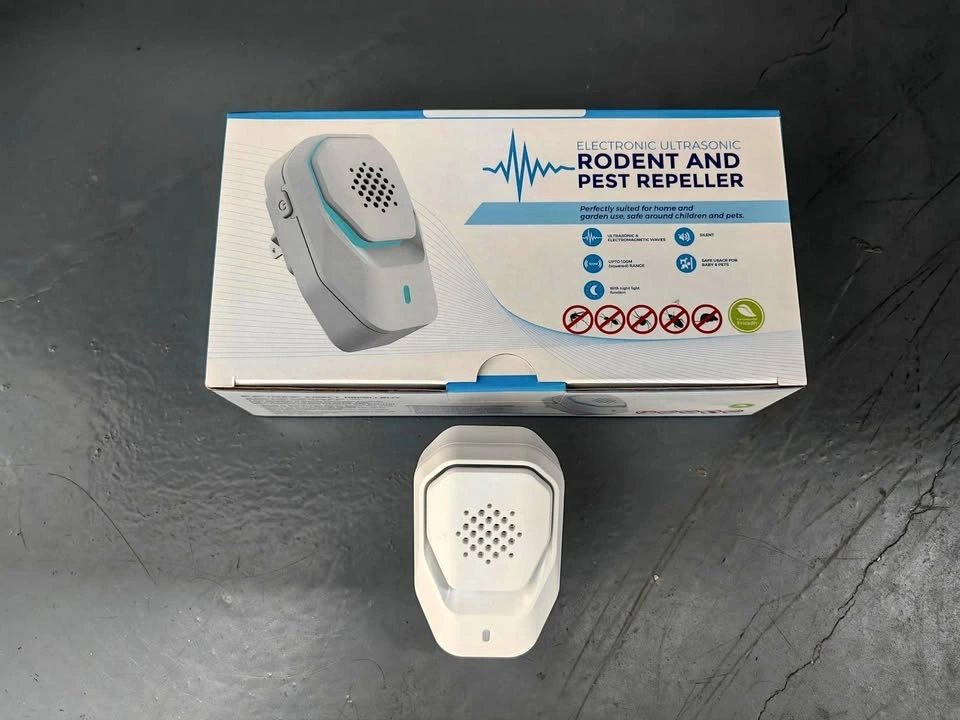 New electronic ultrasonic rodent and pest repeller. Uses ultrasonic and electromagnetic waves to keep pests away. It's super silent and has a night light function. Safe for baby and pets, plus it's eco-friendly. Good for home and garden use, covers up to 100 square meters. Just plug it in!