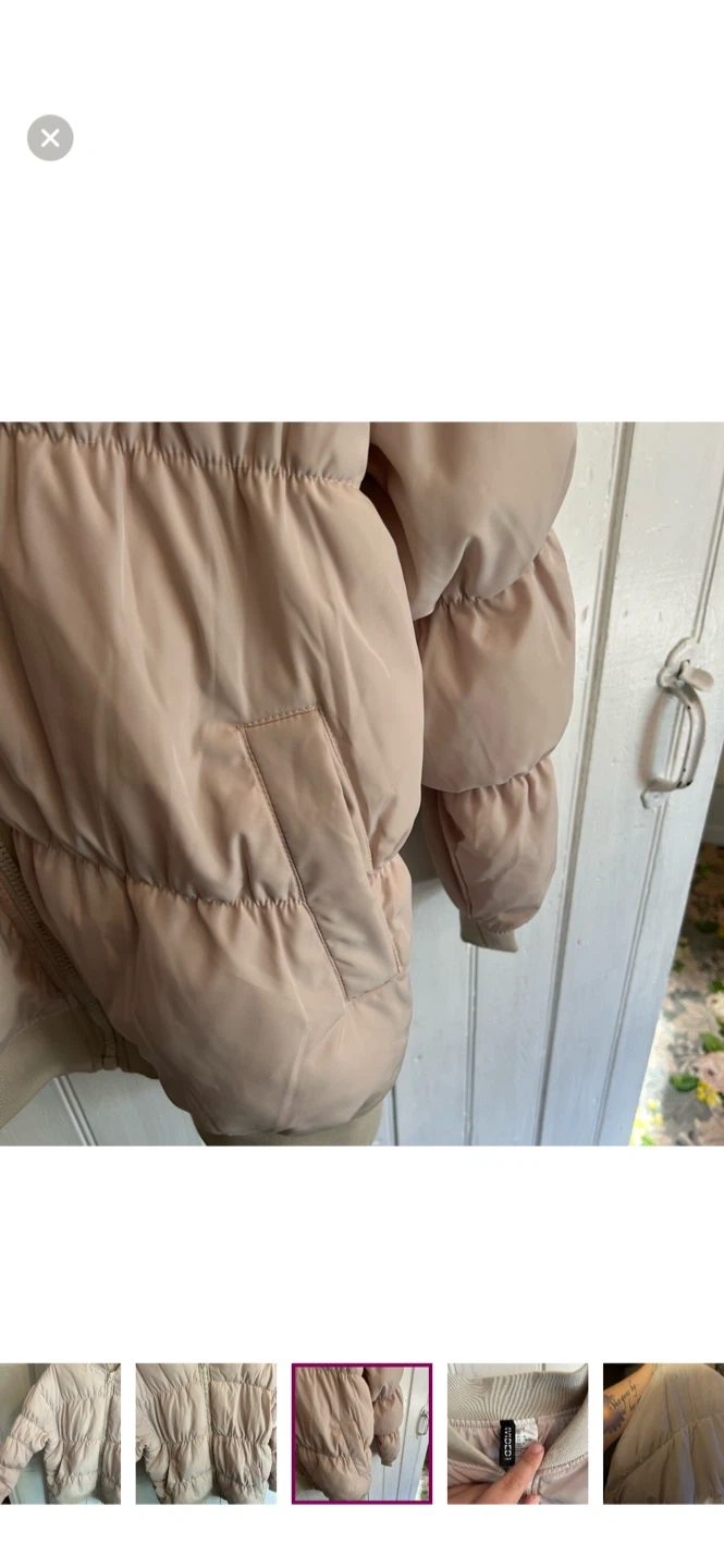 Divided brand for H&M. Tan zip up puffer jacket, hip length. Tan in colour. Size women’s small. Brand new condition minus some faint black scuff on the back, untreated.