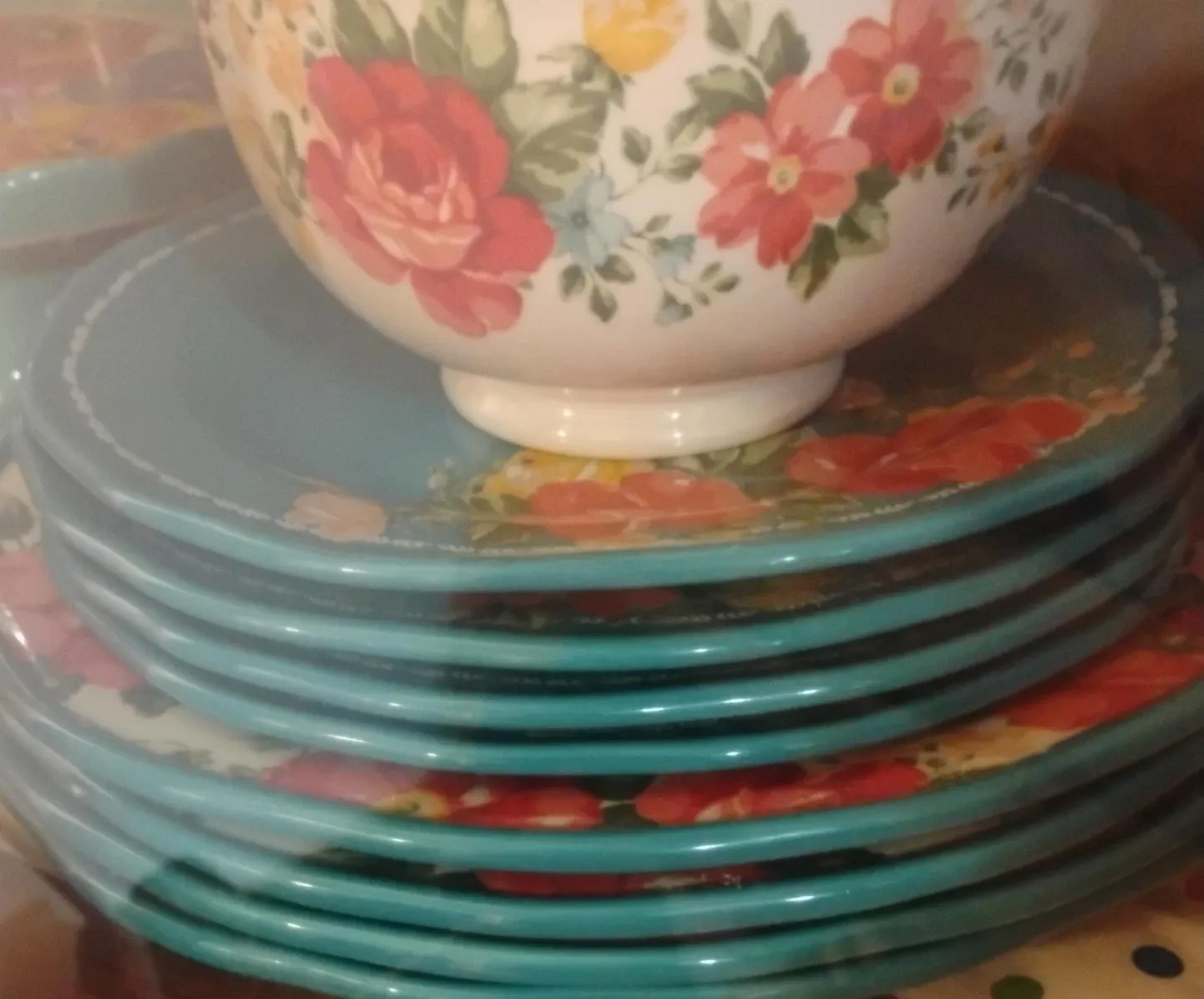 This set features a floral and turquoise plates with a floral design. It's perfect for adding a touch of vintage charm to your kitchen or dining table.