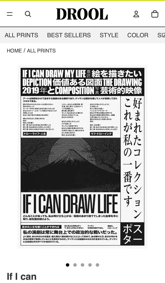 Independent art prints by Todd Pham from Drool Art. Both prints are black and white. One is 'If I Can Draw My Life' and the other is 'As If Dreaming'. Size A2. Frames available for an extra $20 (frame size 50x70).