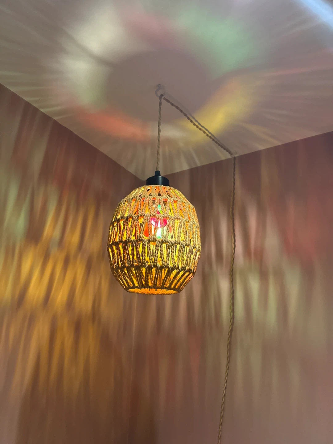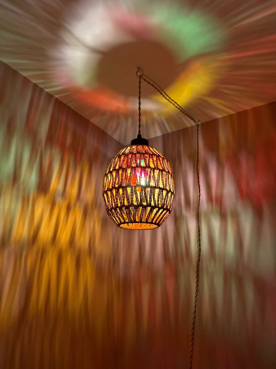 Add a unique touch to your space with this woven pendant lamp! It casts a beautiful, colourful light pattern that will make any room feel cozy and inviting