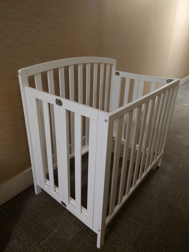 121barely used, like new, minicrib. Foldable and upgradable to a bed. Our daughter preferred other beds. Comes with a Dream On Me mattress, a thinner pad, and a mattress fitted sheet.
