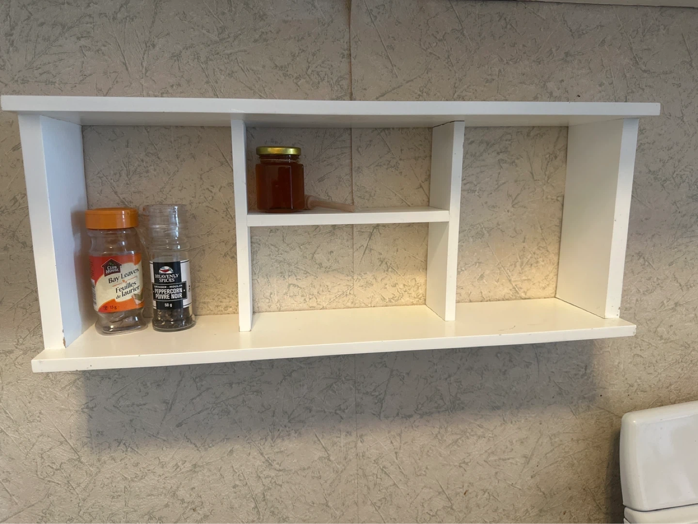 White wood shelf (custom made) easy to installed can be use any space needed .