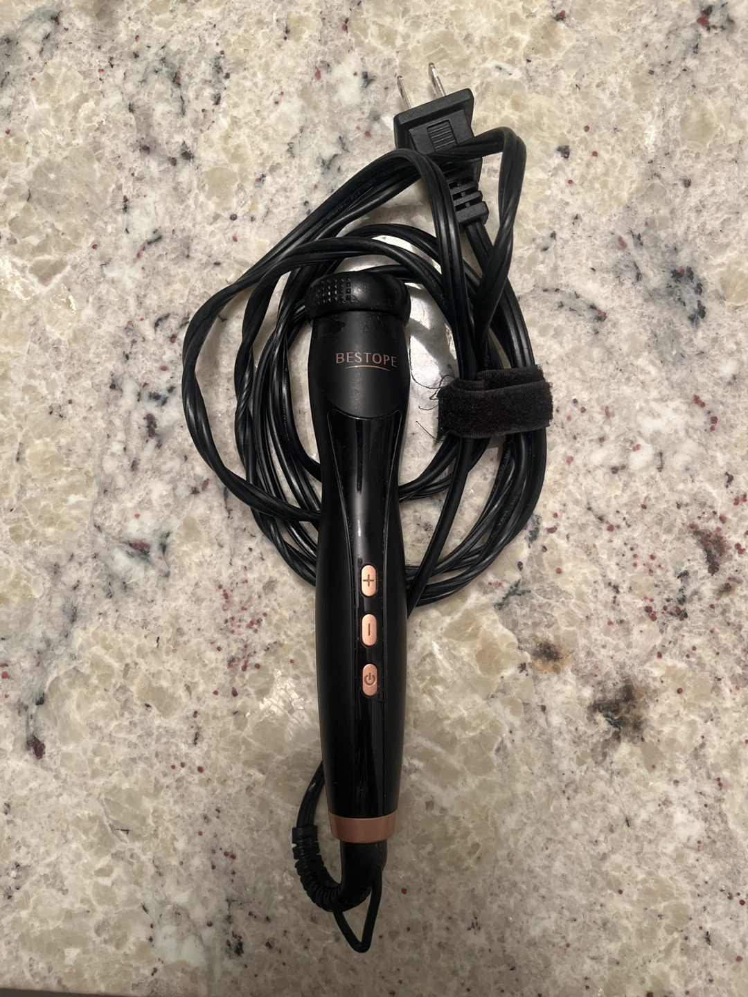 This is a 5-in-1 ceramic curling wand set from BESTOPE. It comes with five interchangeable barrels for different curl styles and a heat-resistant glove. The barrels include a bubble wand, a 25mm cone, a 19mm cone, a 13-25mm cone, and a 25mm cone.