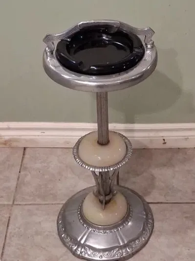 Vintage Ashtray Stand with Black Insert and Onyx Accents