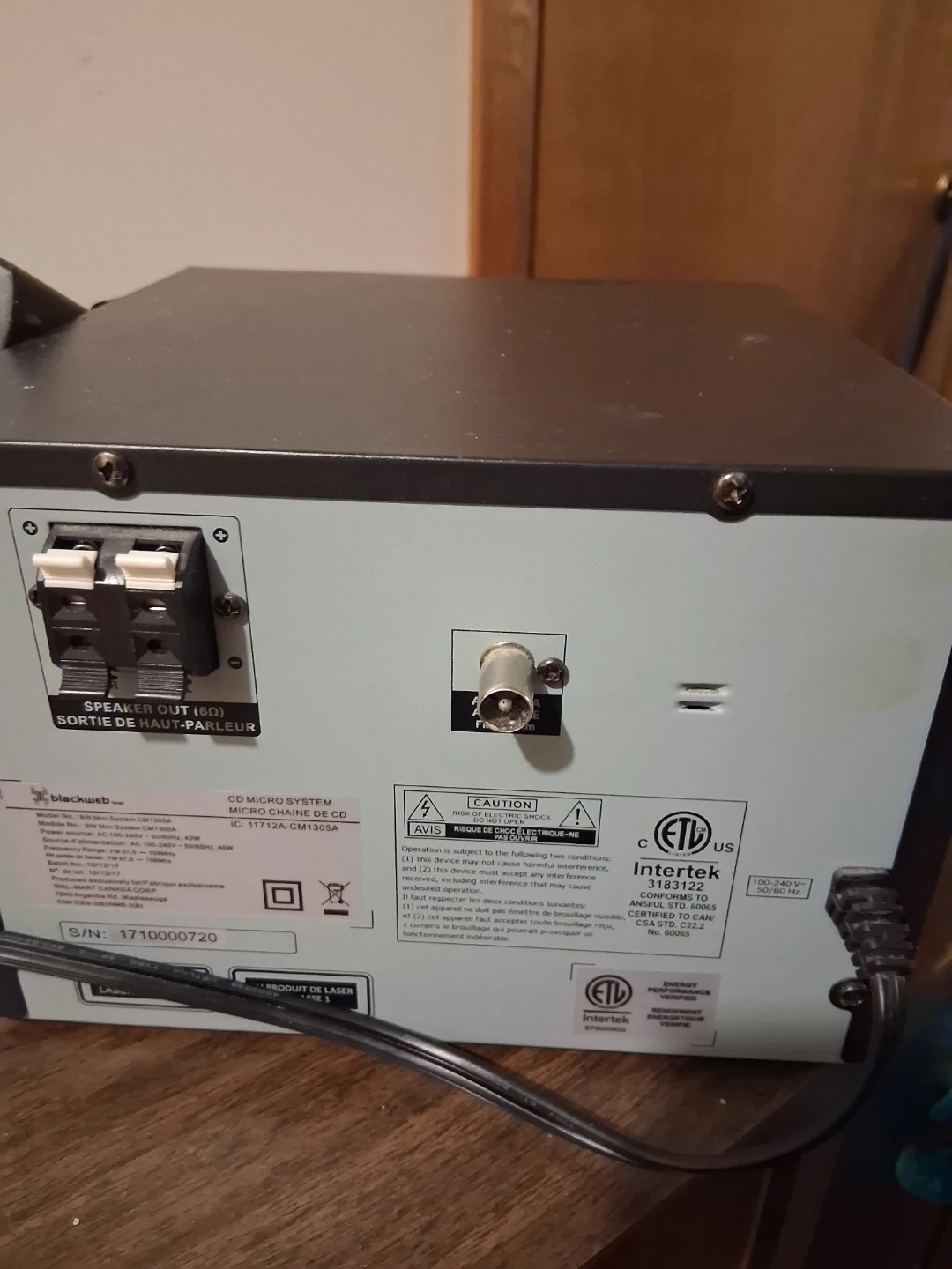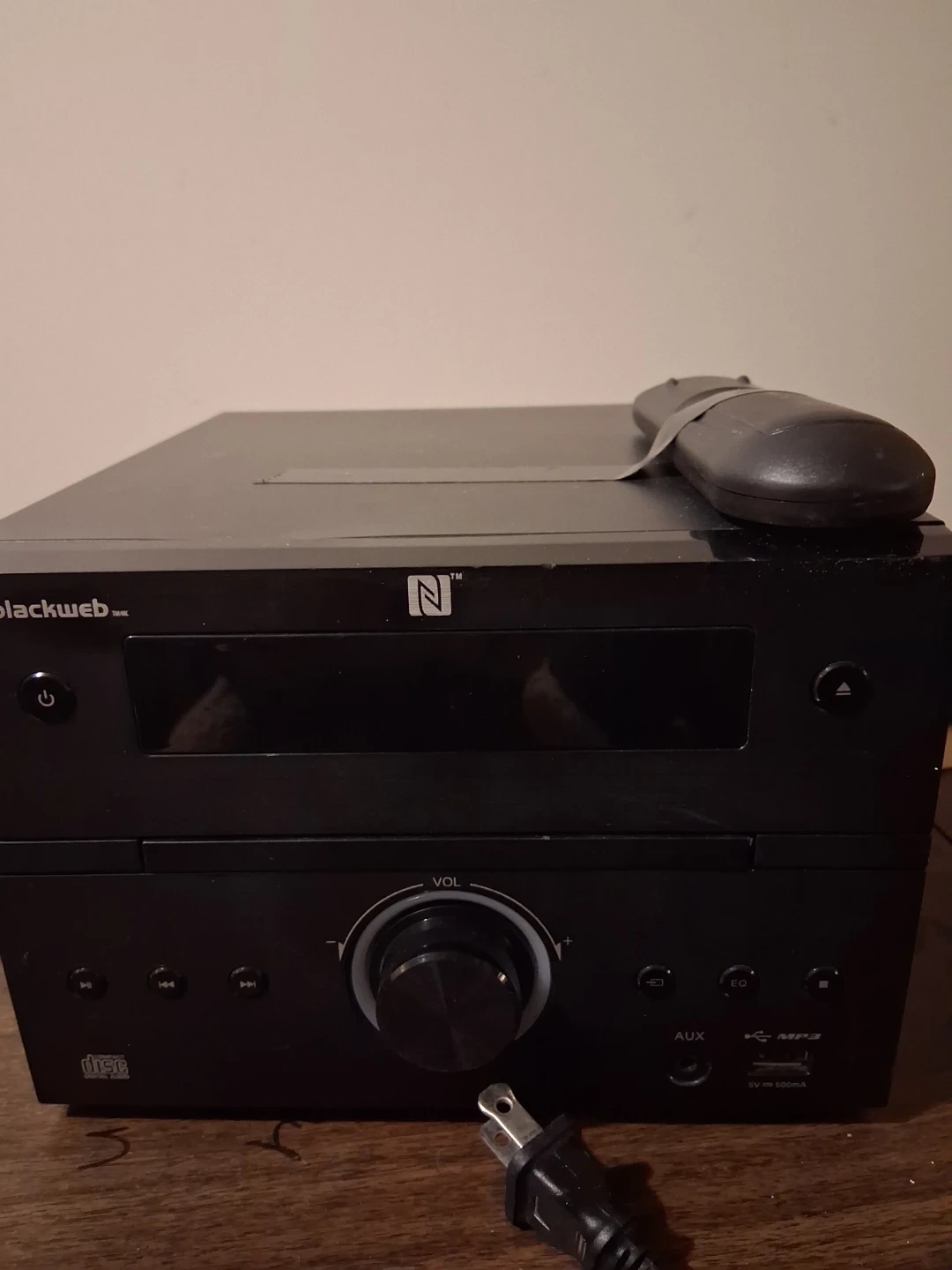 Blackweb CD micro system with remote. Includes remote and power cord. Features AM/FM radio and USB input.
